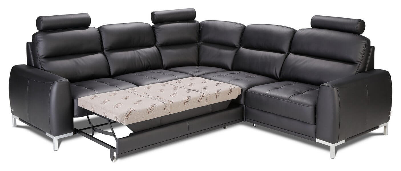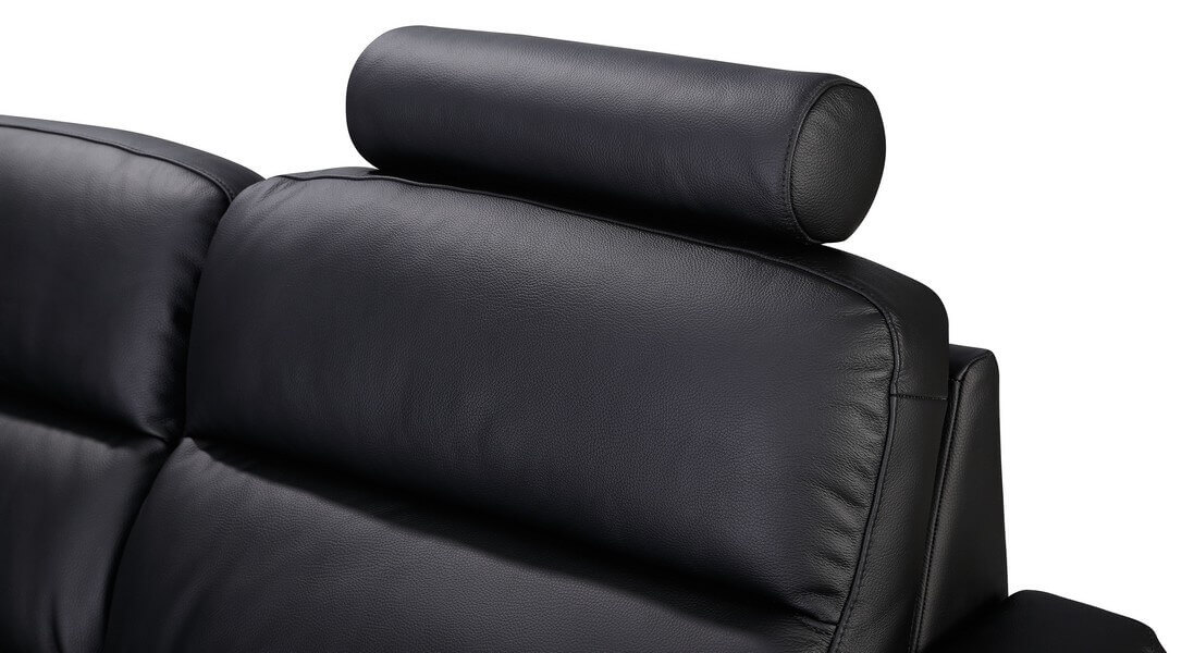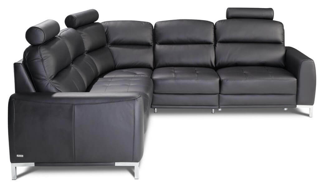 Płynnie sterowana elektrycznymi sensorami funkcja relaksu dzięki czemu ustawisz oparcie w dogodnym dla siebie położeniu a w dodatkowej opcji wysuwany zagłówek. Posiada funkcję spania typu delfin o powierzchni 193 cm x 122 cm. Narożnik dostępny jest w wersji lewostronnej oraz prawostronnej.