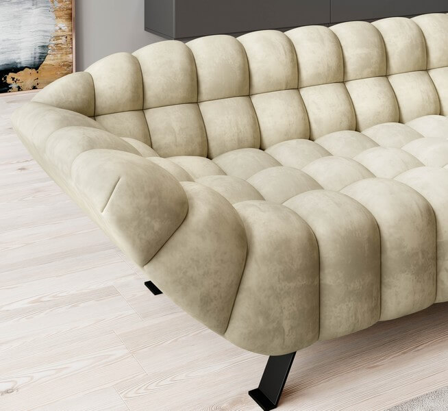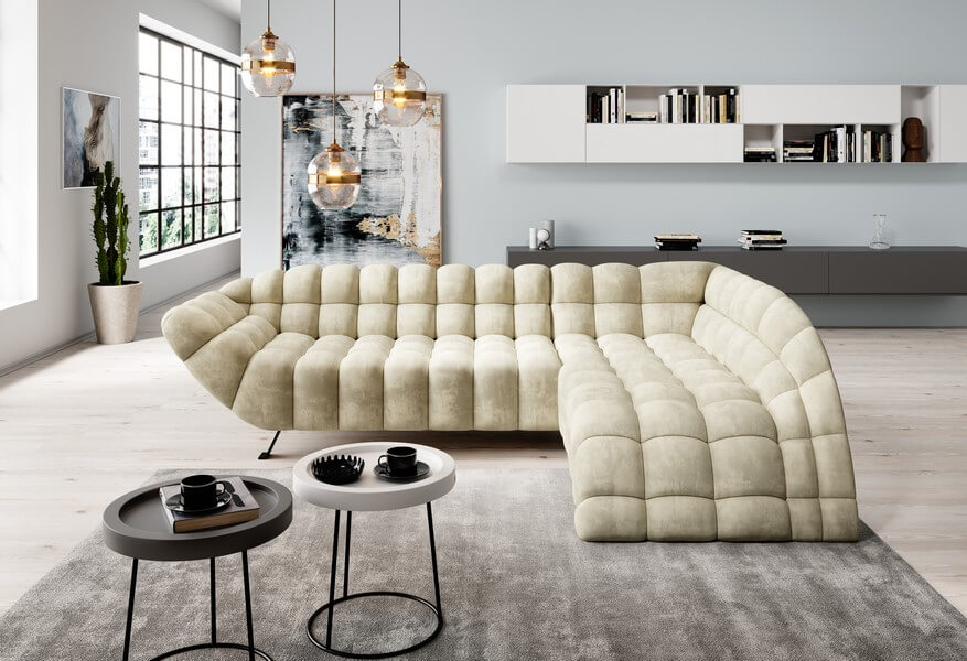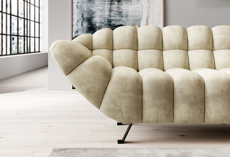 Liquid to komfortowy narożnik w awangardowym stylu. Na uwagę zasługują efektowne przeszycia siedziska. Oryginalny bok mebla oraz opadająca otomana zapraszają i gwarantują wypoczynek na najwyższym poziomie.