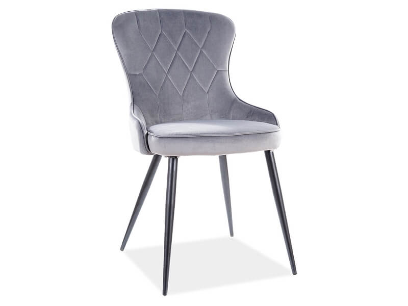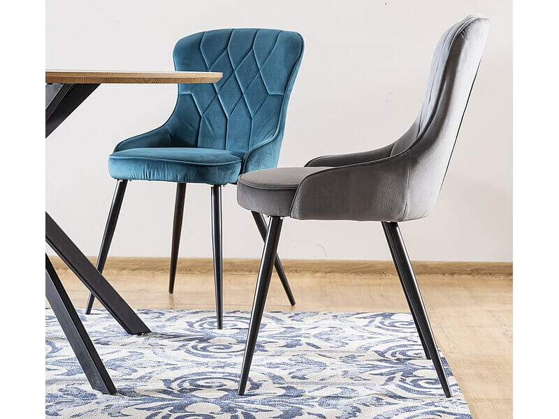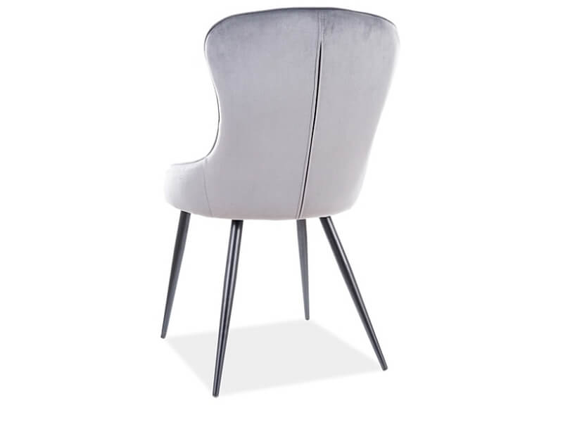 Wygodne siedzisko osadzone jest na metalowych nogach w modnym kolorze czarny mat. Elegancji i uroku dodają delikatne pikowania na oparciu. Krzesło doskonale sprawdzi się w aranżacji w salonie, w jadalni, jak również w sypialni.