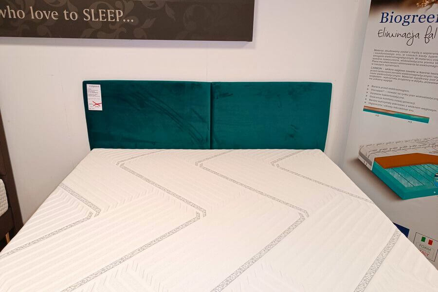 Wyjątkową cechą tego modelu jest brak ramy, co nadaje mu minimalistyczny i nowoczesny wygląd. Zagłówek o wymiarach 160x50x6 cm, wieszany na ścianie, dodaje elegancji i umożliwia swobodne aranżowanie przestrzeni wokół łóżka.