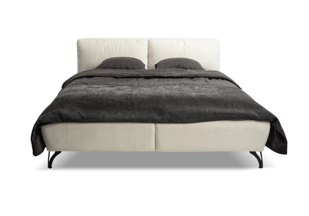 Łóżko Levante to propozycja, która wprowadzi do sypialni elegancję i nowoczesny charakter. Jego największą ozdobą jest efektowne, miękko tapicerowane wezgłowie o lekko zaokrąglonej formie, przedzielone subtelnym przeszyciem na dwie części. Dzięki temu zyskuje ono wizualną lekkość i harmonijną linię, a jednocześnie zapewnia wygodne podparcie podczas wieczornego czytania czy porannej kawy w łóżku.
