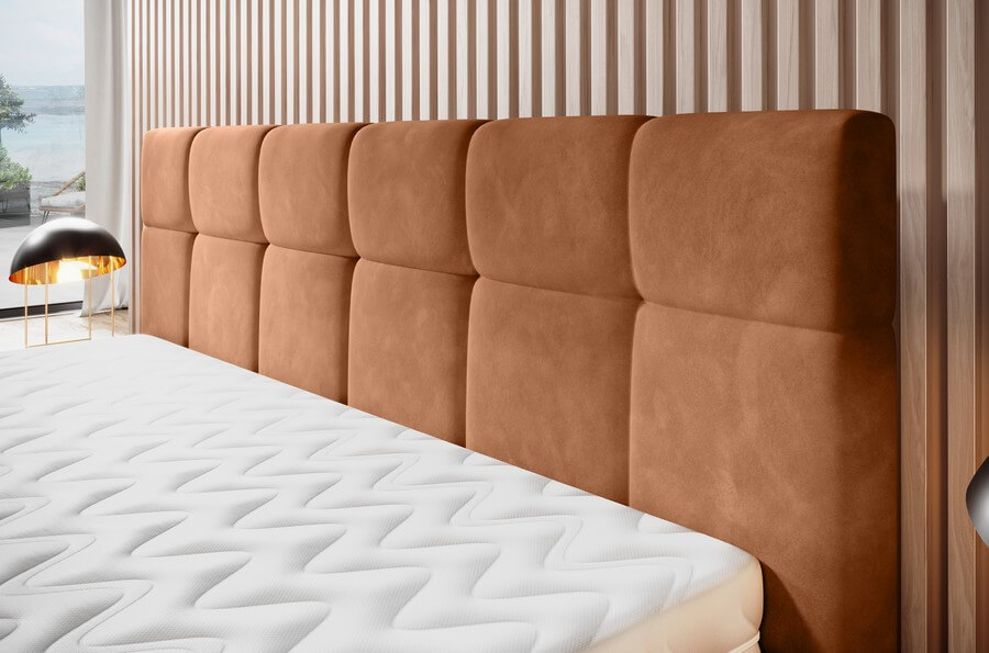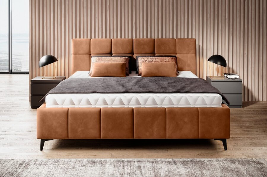 Łóżko Naomi emanuje nowoczesnym urokiem i elegancją. Jego designerskie wezgłowie oraz rama z ozdobnymi przeszyciami stanowią nie tylko funkcjonalne elementy, ale również artystyczne akcenty, które dodają charakteru przestrzeni sypialnianej. Wezgłowie łóżka prezentuje się niezwykle stylowo, tworząc efektowny punkt centralny w pomieszczeniu. Subtelne, ale zauważalne przeszycia na powierzchni nadają mu wyjątkowej tekstury oraz głębi.