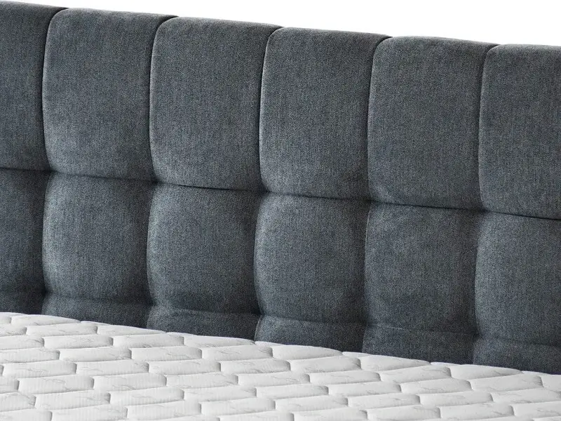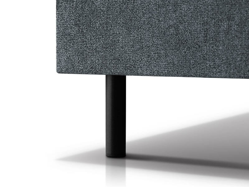 Jego design wyróżnia się wysokimi, czarnymi nóżkami, które dodają mu subtelnej lekkości, jednocześnie podkreślając stabilność konstrukcji. Eleganckie pikowanie wezgłowia nadaje łóżku niepowtarzalnego charakteru, dodając mu szyku i stylu.