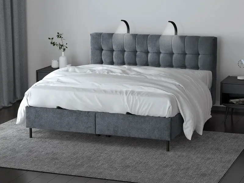 Łóżko wyposażone jest w regulowane oświetlenie, które umożliwia dostosowanie intensywności światła do potrzeb użytkownika, idealne do czytania przed snem lub stworzenia przyjemnej atmosfery w sypialni.