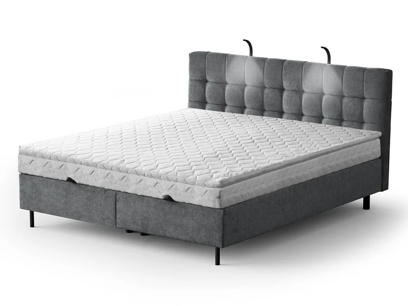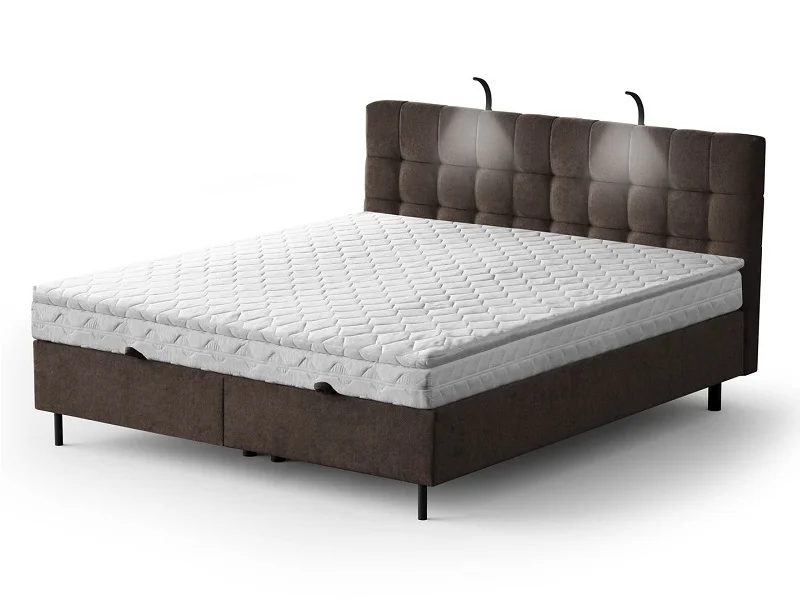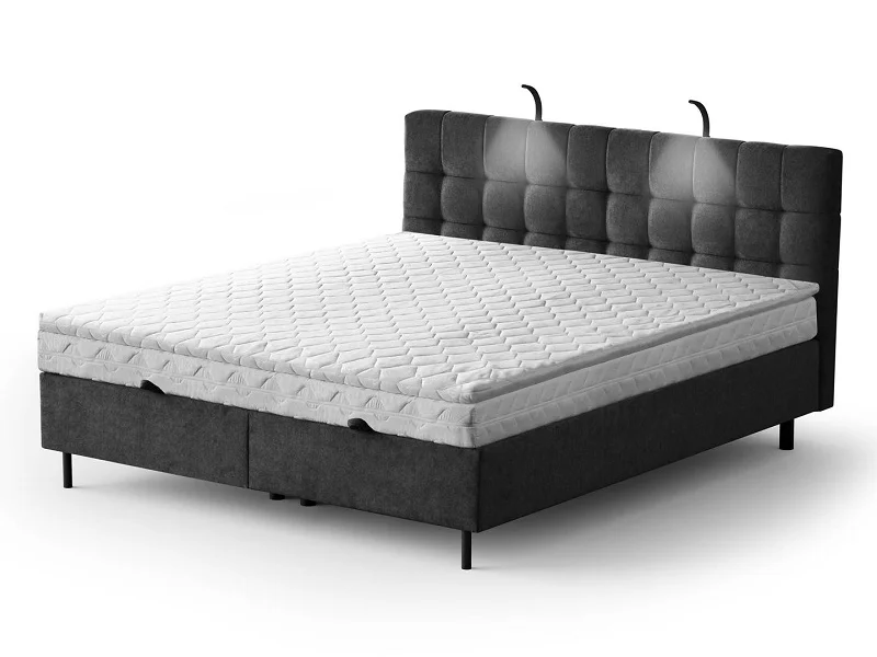 Łóżko tapicerowane z materacem + topper i oświetleniem MUNA