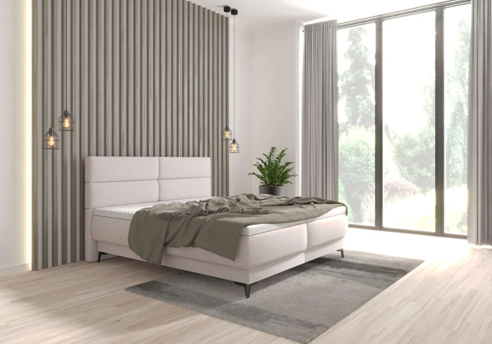 Wyraźna, uporządkowana forma zaprojektowana z myślą o komforcie i codziennej funkcjonalności. Mocno zaznaczone, regularne przeszycia na wezgłowiu nadają mu zdecydowany charakter i sprawiają, że łóżko prezentuje się elegancko, ale bez zbędnej dekoracyjności. To model, który dobrze odnajduje się w nowoczesnych i spokojnych aranżacjach sypialni.