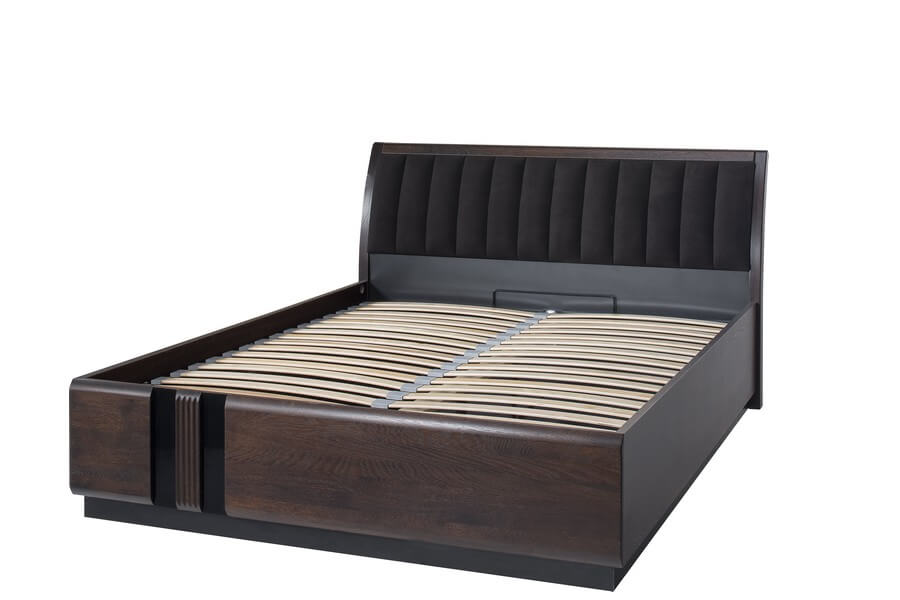 Łóżko z wezgłowiem tapicerowanym PORTI dąb czekoladowy Szynaka Meble