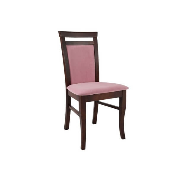 Eleganckie i klasyczne krzesło z tapicerowanym siedziskiem oraz oparciem. Krzesło wykonane ze drewna bukowego. Dostępne w bogatej palecie barw i tkanin do wyboru.