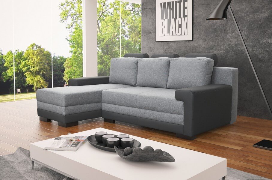 Narożnik Lugano Rec/KS-2F/BK/KS posiada praktyczną funkcję spania i pojemnik na pościel. W narożniku zastosowano sprężynę falistą oraz sprężynę typu bonell.