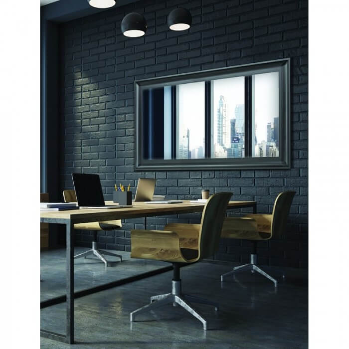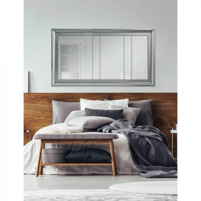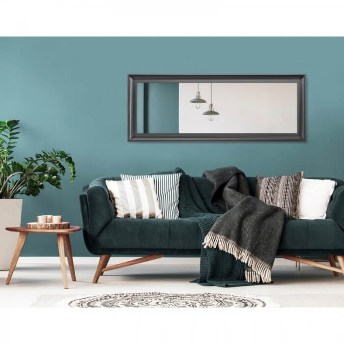 Rama dostępna w kolorach: grafit, złota i srebrna. Tafla lustra wykonana ze szkła o grubości 4 mm z grafitowym podlewem z tyłu.