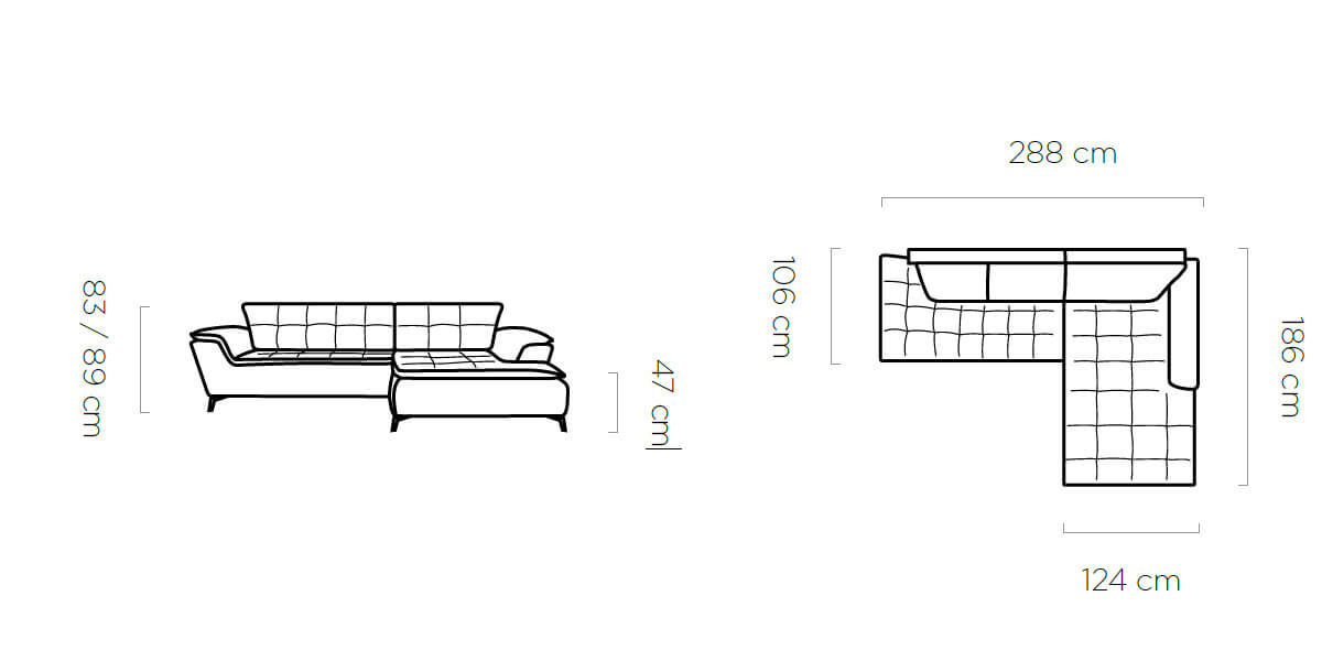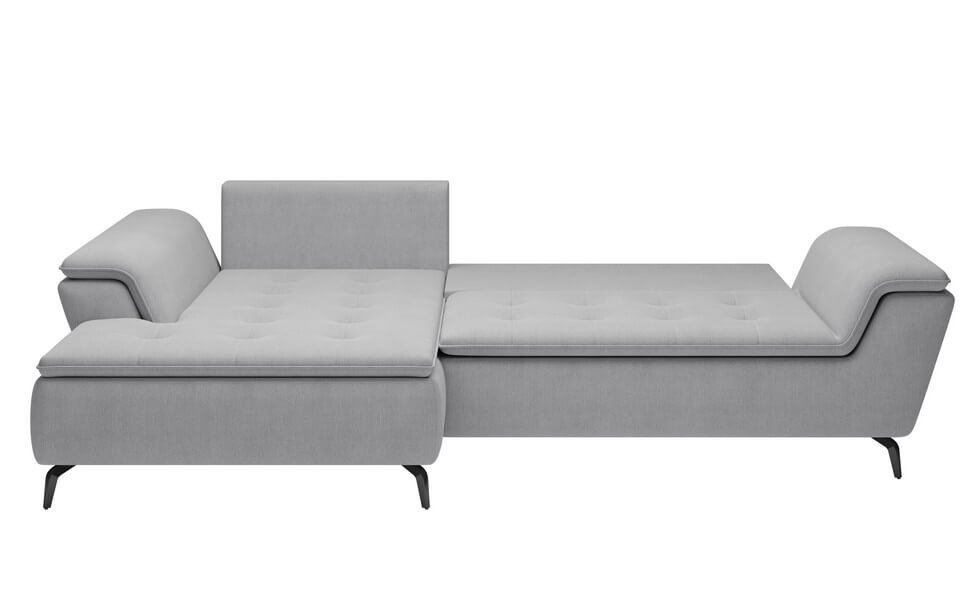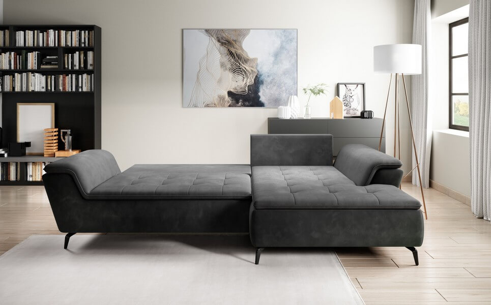 Narożnik Magic posiada funkcję spania (powierzchnia spania: 132×215 cm), system rozkładnia DL oraz pojemnik na pościel. W siedzisku narożnika zastosowano wychylny podnośnik sprężynowy. Komfortowy wypoczynek zapewniają miękkie siedzisko i dwie luźne poduchy oparciowe. Wysokie czarne nóżki dodają mu lekkości i nowoczesnego charakteru.