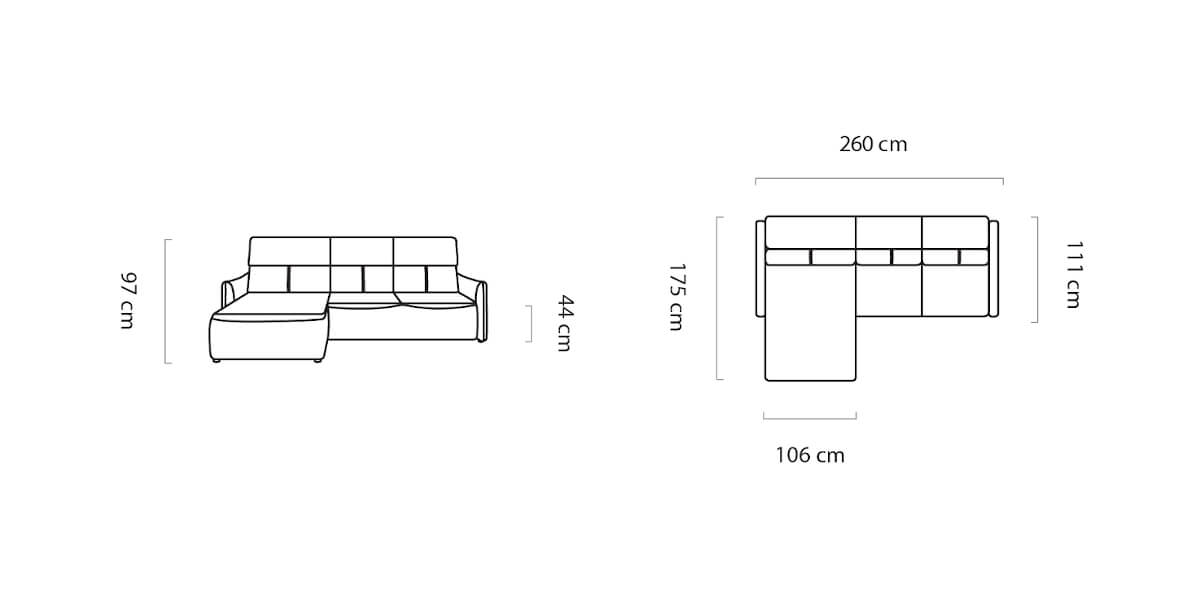 Narożnik Mango z elektryczną regulacją głębokości siedziska, pozwalającej na wysuw aż o 60 cm. Wyposażony w funkcję spania i pojemnik na pościel. Posiada dodatkowo regulowane zagłówki oraz wysuwane oparcie, wysokie podparcie głowy, gwarantując wygodną pozycję w trakcie wypoczynku.