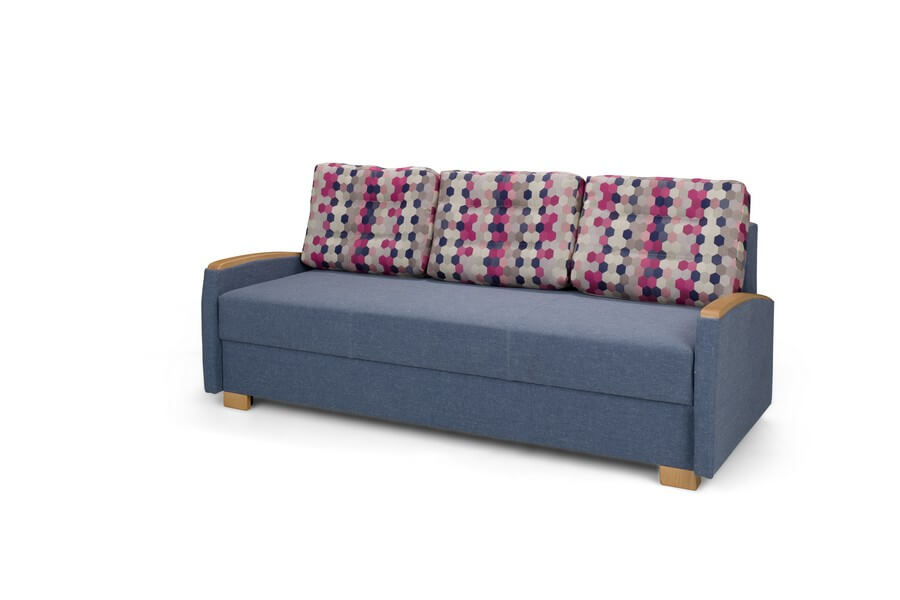 Wersalka MAX XVI to wygodna i elegancka kanapa z funkcją spania oraz pojemnikiem na pościel. W kolekcji dostępna jest również wersja z fotelami. Charakterystycznym elementem tej kanapy są drewniane wykończenia boków, które dodają meblowi stylowego wykończenia.