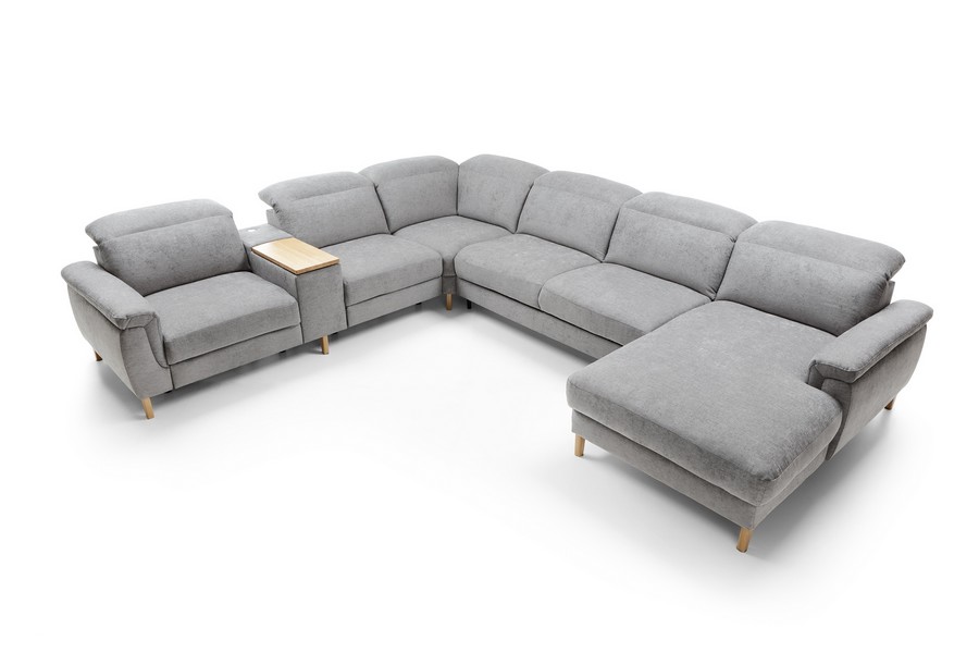Regulacja zagłówków to kolejna cecha, która umożliwia dostosowanie pozycji siedzenia do własnych preferencji i zapewnia dodatkowe wsparcie dla szyi i głowy. Dodatkowo model wyposażony w dotykową lampkę ledową, która umożliwia regulację jasności światła. To idealne rozwiązanie dla tych, którzy chcą stworzyć odpowiednią atmosferę w swoim wnętrzu. Kolekcja jest modułowa, dzięki czemu istnieją szerokie możliwości zbudowania wymarzonego zestawu.