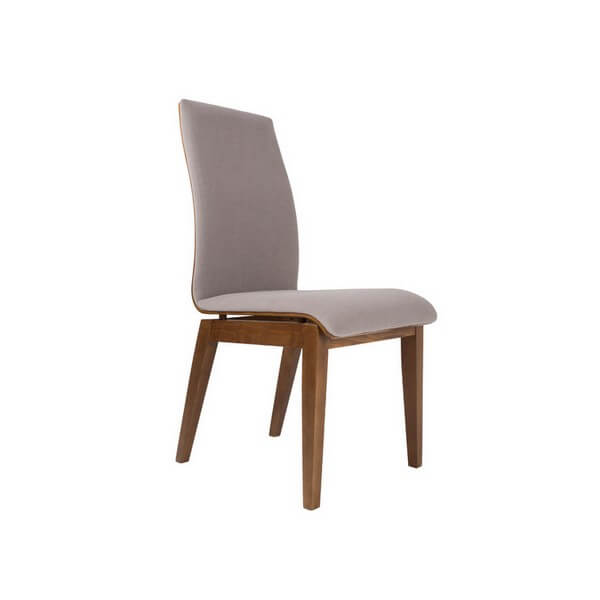 Nowoczesne krzesło o niebanalnym wzornictwie, siedzisko wykonane z giętej sklejki dębowej. Krzesło dostępne w bogatej palecie barw i tkanin do wyboru. Nogi wykonane z litego drewna.