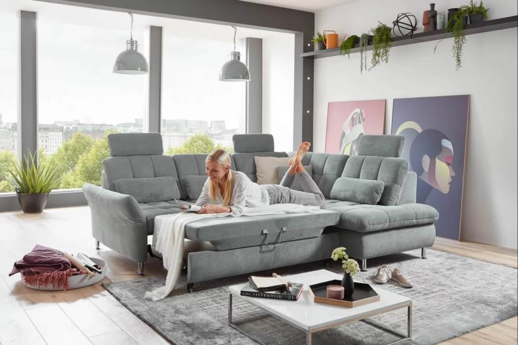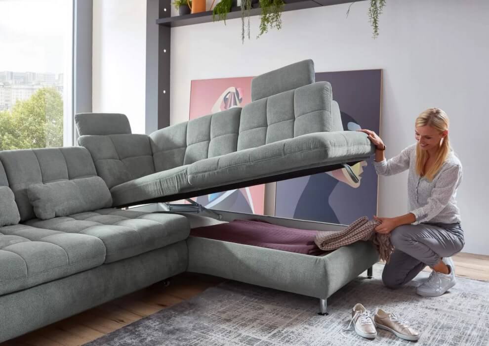 Narożnik MP-IN20016 zapewni Ci wyjątkowy komfort. Posiada funkcję spania oraz praktyczny pojemnik na pościel. Uroku dodają charakterystyczne przeszycia na oparciu i siedzisku.