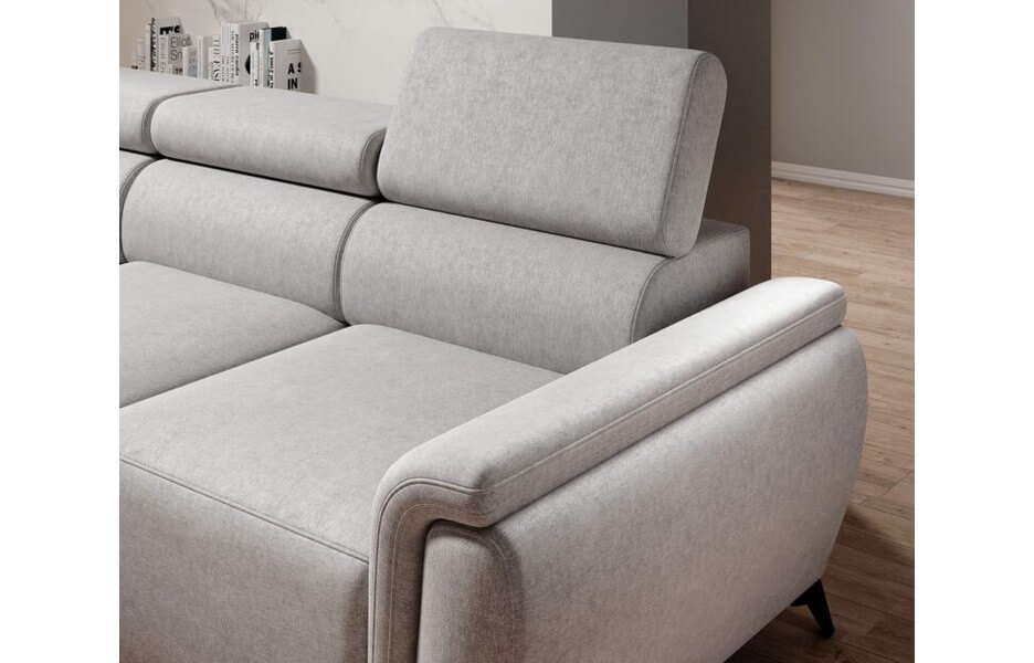 Szukasz przestronnego narożnika, który pozwoli Ci się zrelaksować po całym dniu pracy? Nowoczesny i komfortowy narożnik Atlanta to wypoczynek wyposażony w funkcję spania i system rozkładania PUMA oraz regulowane zagłówki. Posiada praktyczny i przestronny pojemnik na pościel.