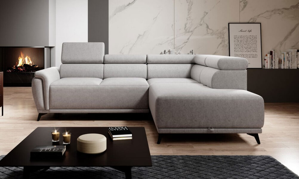 Wygodę wypoczynku zapewnia system sprężyn falistych oraz pianka wysokoelastyczna. Dostępny w wersji lewostronnej oraz prawostronnej.