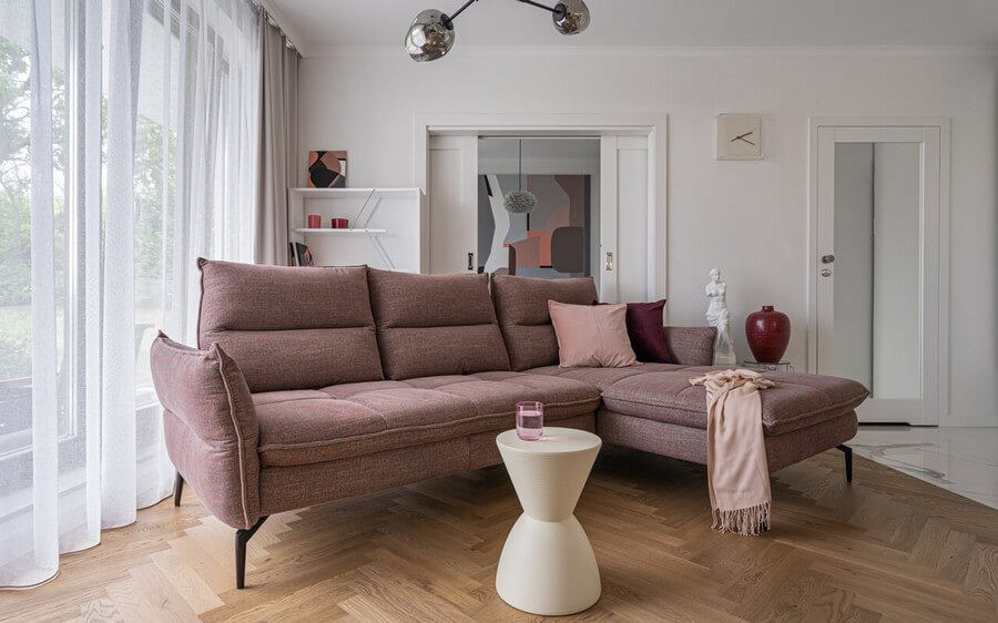 Jednym z unikalnych rozwiązań narożnika Axel są przesuwane oparcia, które pozwalają na dostosowanie głębokości siedziska do własnych potrzeb. Miękkie podłokietniki można regulować pionowo lub odchylić na zewnątrz, w zależności od preferowanej pozycji do wypoczynku.