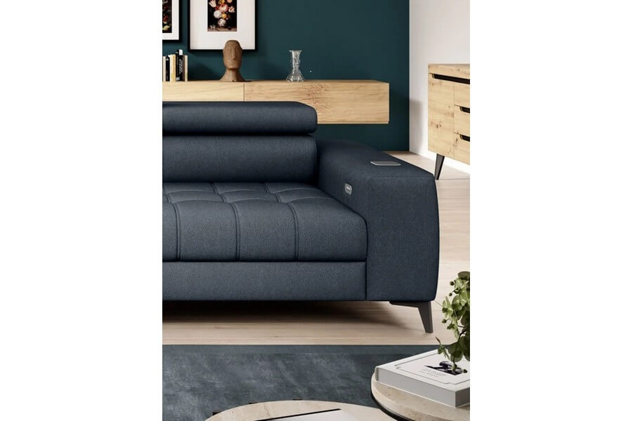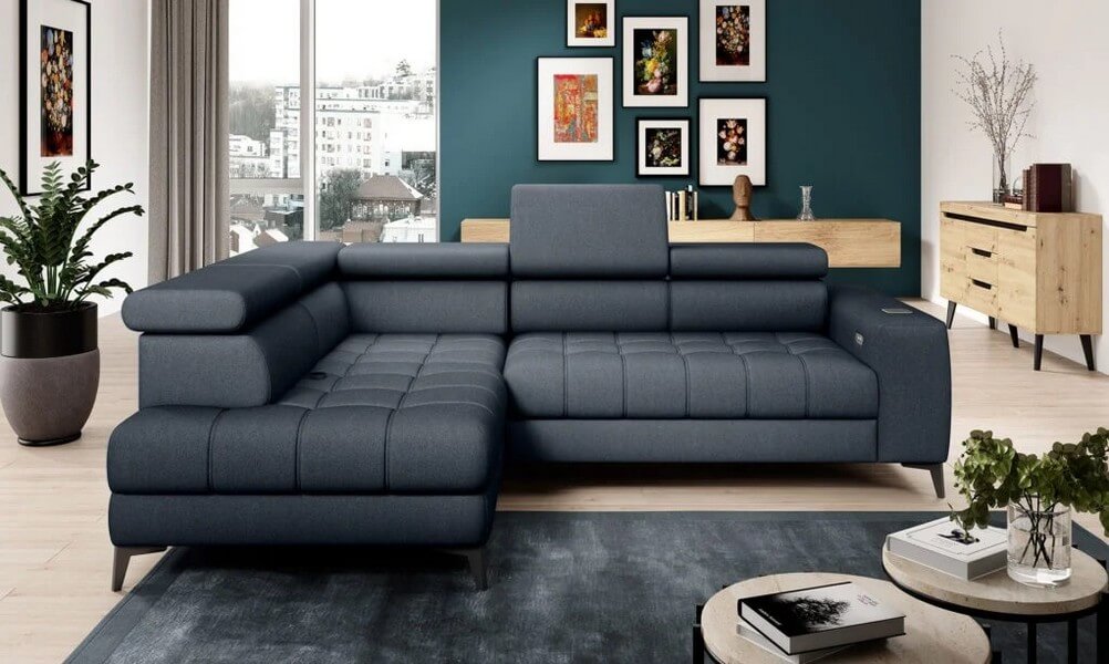 Nowoczesny i komfortowy narożnik Baggio to doskonała propozycja dla osób, które poszukują komfortowych i funkcjonalnych rozwiązań. Łagodna linia oraz nowoczesna forma, funkcja spania, pojemnik na pościel, regulacja kąta nachylenia zagłówka i elektrycznie regulowana głębokość siedziska zapewnią pełen komfort użytkowania.