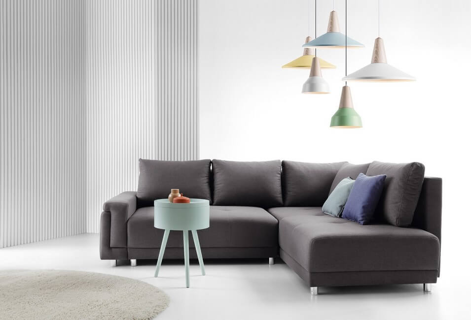 BEATE to nowoczesny i prosty narożnik z funkcją spania i pojemnikiem na pościel. Został wyposażony w wygodny i prosty mechanizm rozkładania typu DL.