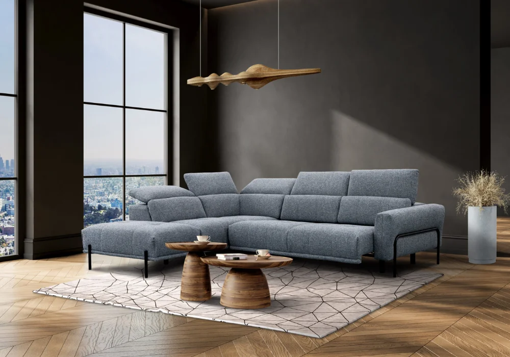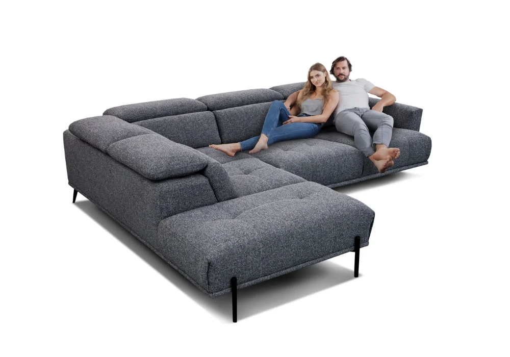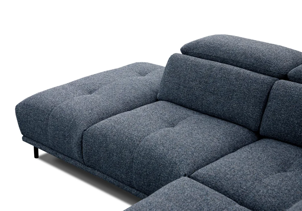 Największym atutem narożnika jest elektrycznie wysuwane siedzisko – możliwość regulacji głębokości aż o 27 cm sprawia, że w kilka chwil zmienisz sofę w wyjątkowo komfortową strefę relaksu. To rozwiązanie, które docenią zarówno miłośnicy popołudniowej drzemki, jak i wieczornego maratonu filmowego.