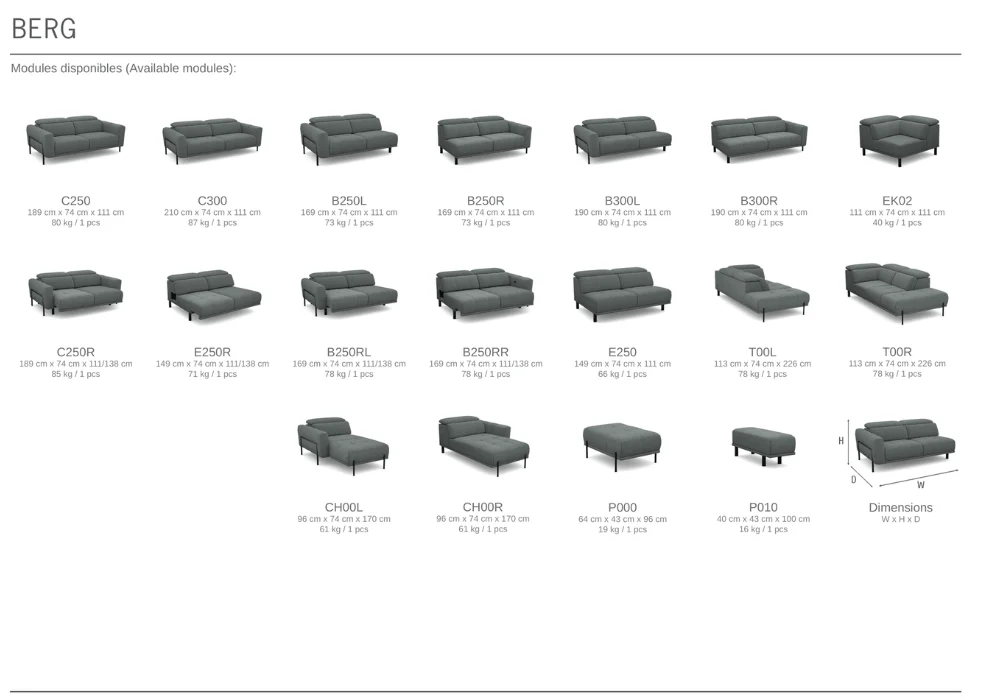 Dostępne moduły narożnika Berg
