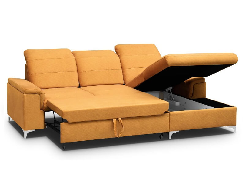 Jedną z najbardziej wyjątkowych cech tego narożnika jest ruchomy zagłówek, który zapewnia dodatkowe wsparcie dla głowy i szyi, dostosowując się do preferencji użytkownika. Dodatkowo, funkcja spania sprawia, że Bergamo Mini może szybko i łatwo przekształcić się w wygodne łóżko.