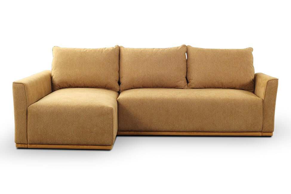 Rozkładany narożnik BUMI, z pojemnikiem na pościel i mechanizmem rozkładania typu DL zachwyci miłośników prostych rozwiązań. Wygodne siedzisko wypełnia sprężyna falista i pianka. Dostępny w wersji lewostronnej oraz prawostronnej i bogatej ofercie tkanin obiciowych. Komfortowe oparcie stanowią 3 poduszki oparciowe.