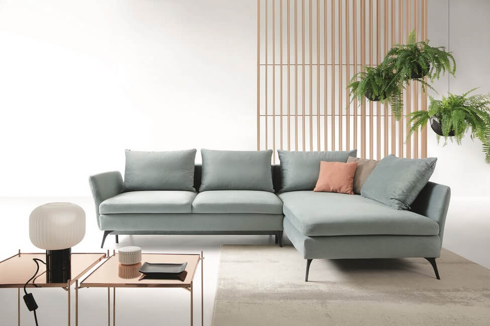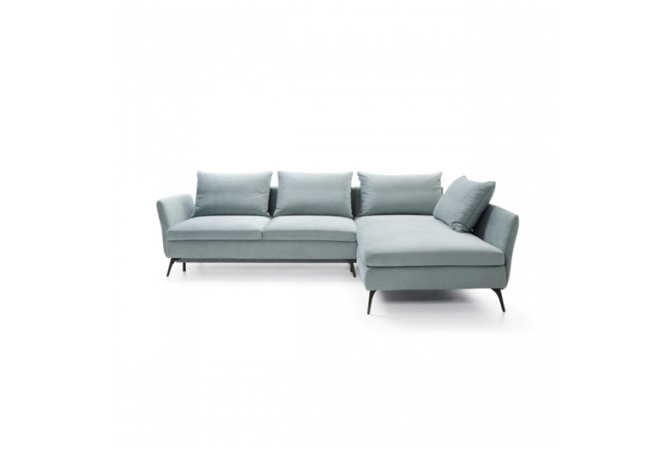 Rozkładany narożnik CALABRIA, wyważone proporcje tego wypoczynku będą ozdobą każdego wnętrza. Wygodne siedzisko wypełnia sprężyna falista. Dostępny w wersji lewostronnej oraz prawostronnej i bogatej ofercie tkanin obiciowych. Model wyposażony w funkcję spania oraz pojemnik na pościel. Dodatkowym atutem wypoczynku jest łatwy system rozkładania typu DL – wystarczy lekko podnieść siedzisko do góry i przesunąć do przodu. Wysokie nóżki (15/16 cm) podkreślają lekkość narożnika.