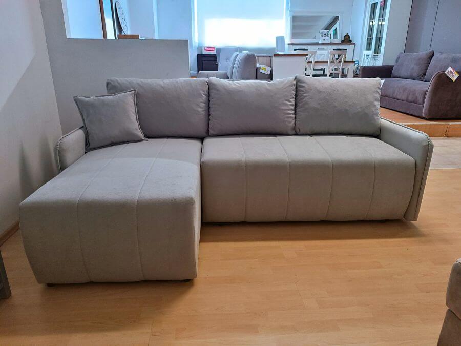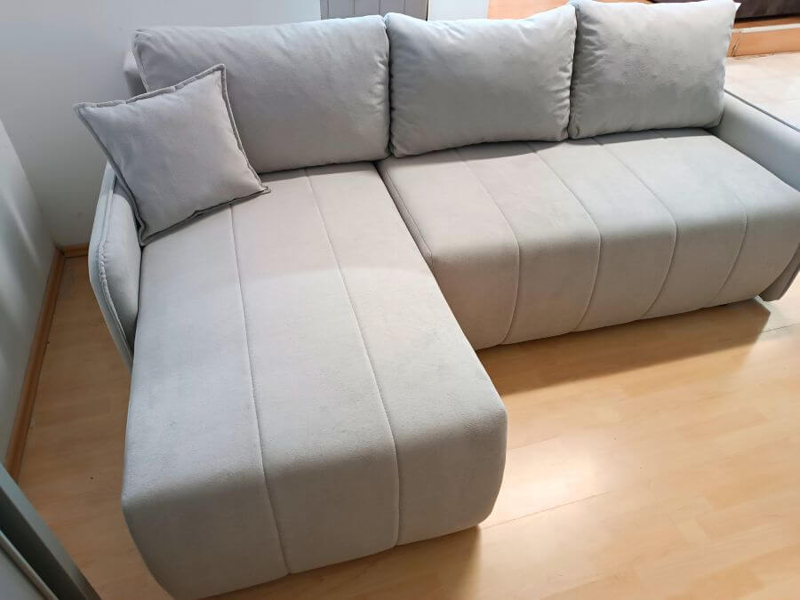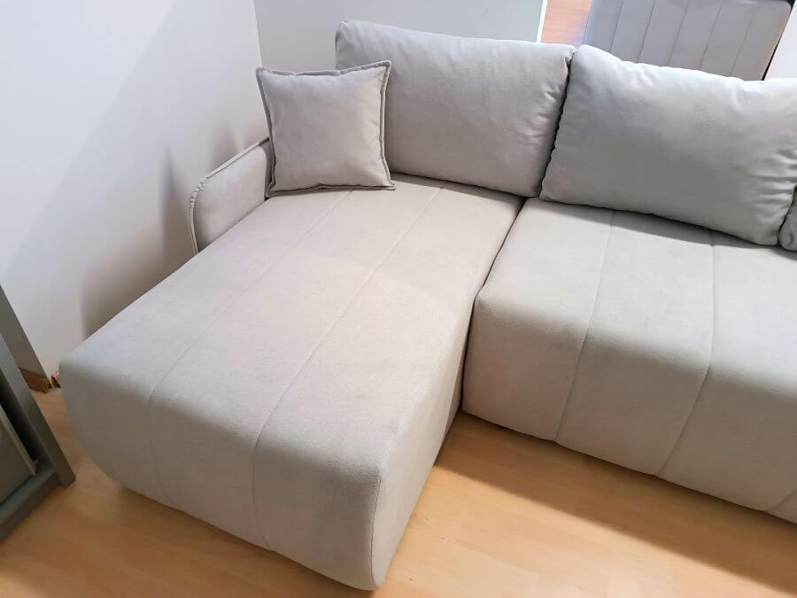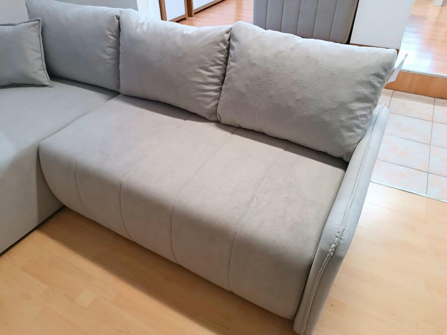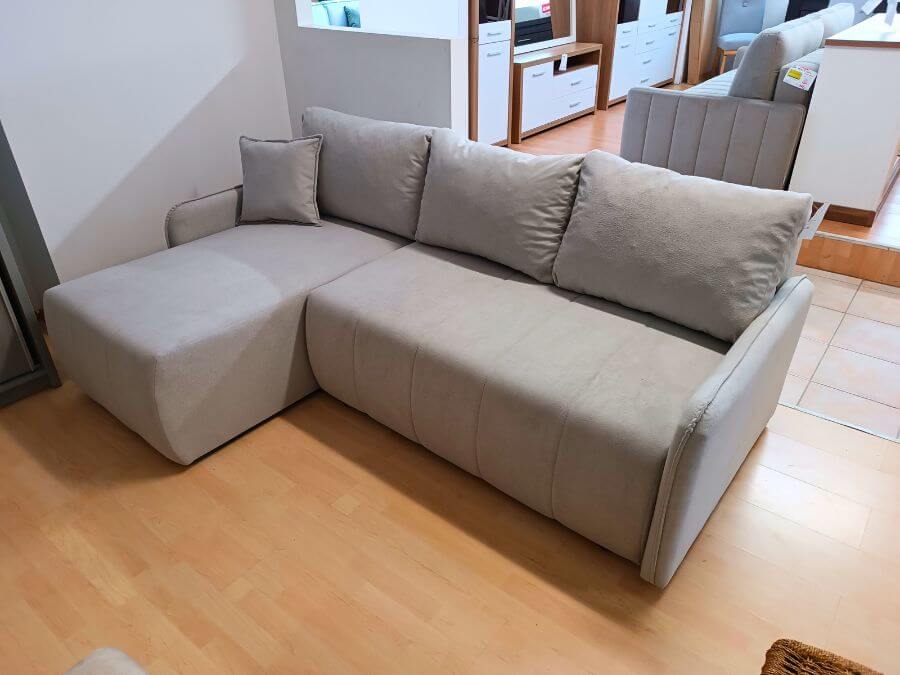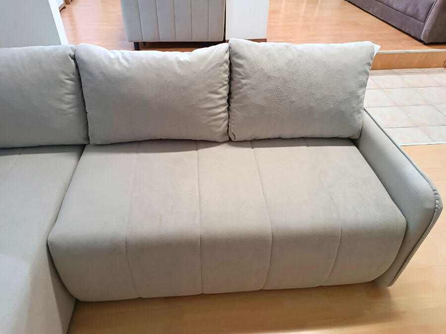 Narożnik posiada pojemnik na pościel, co ułatwia przechowywanie dodatkowych kołder i poduszek. Oferowany narożnik tapicerowany jest tkaniną VELO 632.