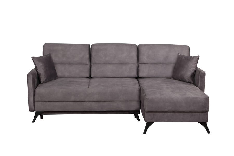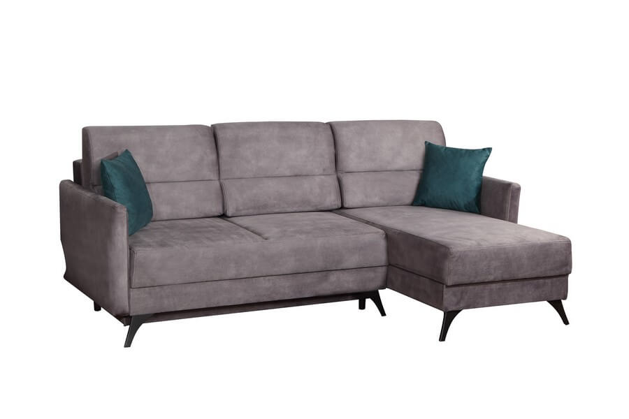 Narożnik Carmen to stylowy i elegancki mebel, który zapewni wygodne miejsce do odpoczynku po ciężkim dniu. Obszerne poduchy oparciowe i równomierne siedzisko są gwarancją komfortu. Do narożnika dołączone są dwa jaśki, które mogą być w kontrastowym kolorze, dodając uroku meblowi. Wąskie podłokietniki sprawiają, że mebel zmieści się nawet w niewielkim pomieszczeniu.