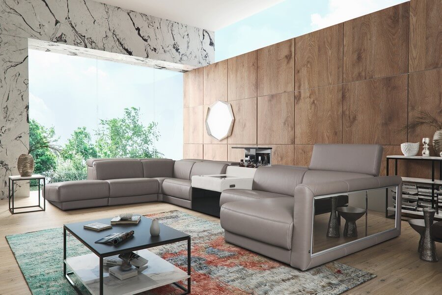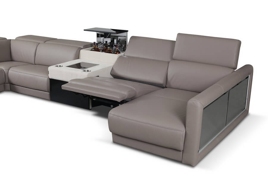 Komfortowy narożnik, wyposażony m.in. w barek elektryczny w stoliku sterowany pilotem, funkcja relaksu, lustra w OTM, gniazda USB do laptopa, regulowane zagłówki i inne. Występuje w opcji: skóra naturalna lub bogatej ofercie tkanin obiciowych.