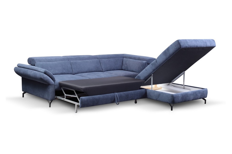 COLBY to nowoczesny narożnik wyposażony w praktyczne rozwiązania. Wygodny podłokietnik, regulowane zagłówki, funkcja spania i praktyczny pojemnik na pościel sprawia, że narożnik sprawdzi się we każdym wnętrzu i spełni oczekiwania osób poszukujących modnego i praktycznego wypoczynku. Kolejnym atutem jest zastosowany system rozkładania typu DELFIN, który pozwoli bardzo szybko zamienić narożnik w wygodne łóżko.