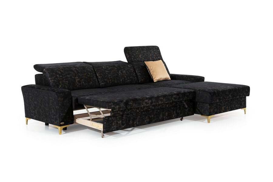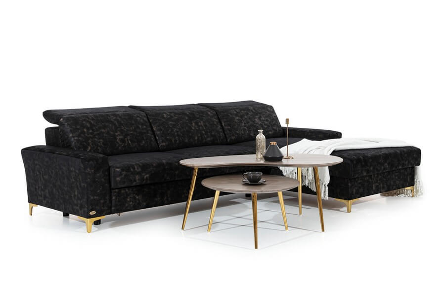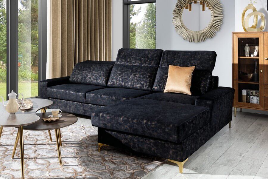 Regulowane zagłówki zapewniają dodatkowy komfort podczas wypoczynku. Nóżki dostępne są w trzech kolorach: złotym, srebrnym i czarnym, co pozwala na dopasowanie mebli do każdego wnętrza. Kolekcja DIVERSO II daje nieograniczone możliwości aranżacyjne, umożliwiając skomponowanie zarówno dużych, jak i niewielkich zestawów. Wymiary i wykaz modułów znajdują się w karcie produktu. Diverso II zaprojektowany w sposób gwarantującym komfort i odprężenie w najlepszym stylu.Narożnik dostępny w pełnej ofercie tkanin Unimebel.