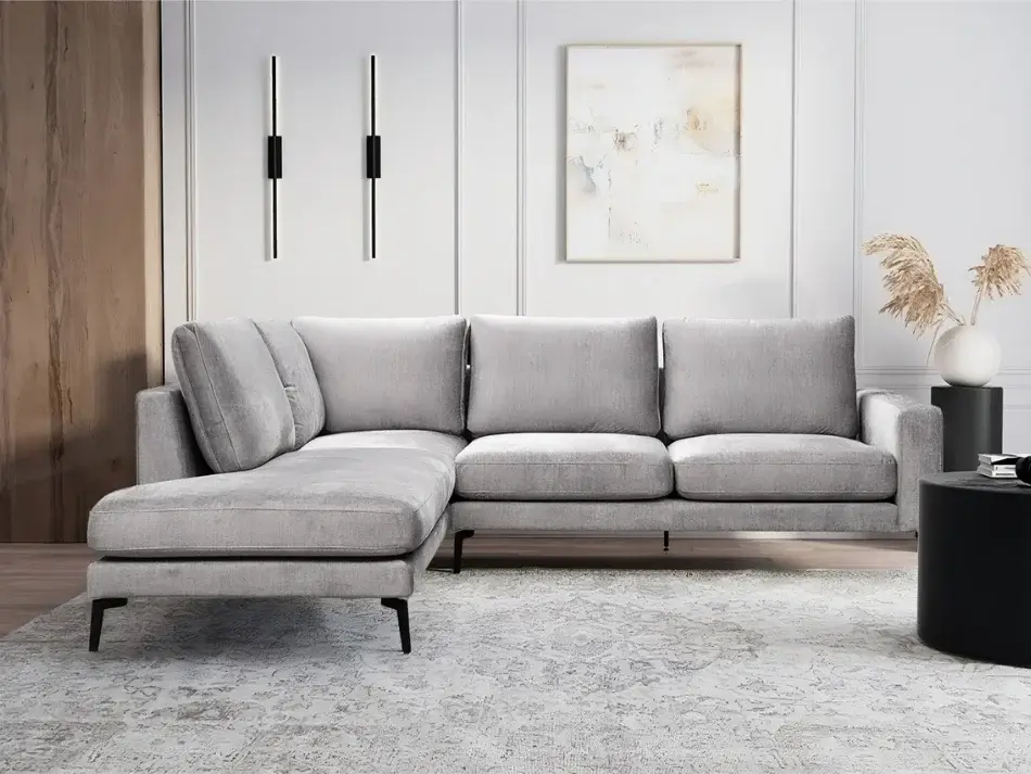 Narożnik Edi marki GKI Design to idealne połączenie nowoczesnego stylu z komfortem. Jego szerokie, wygodne siedziska oraz miękkie poduchy oparciowe zapewniają doskonały wypoczynek. Dzięki szerokiemu podłokietnikowi możesz cieszyć się dodatkowymi wygodami, a wysokoelastyczna pianka gwarantuje trwałość i sprężystość mebla.