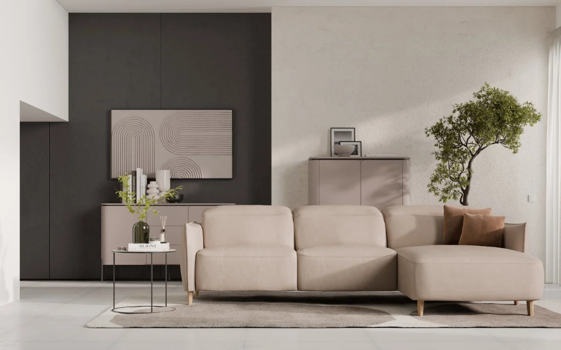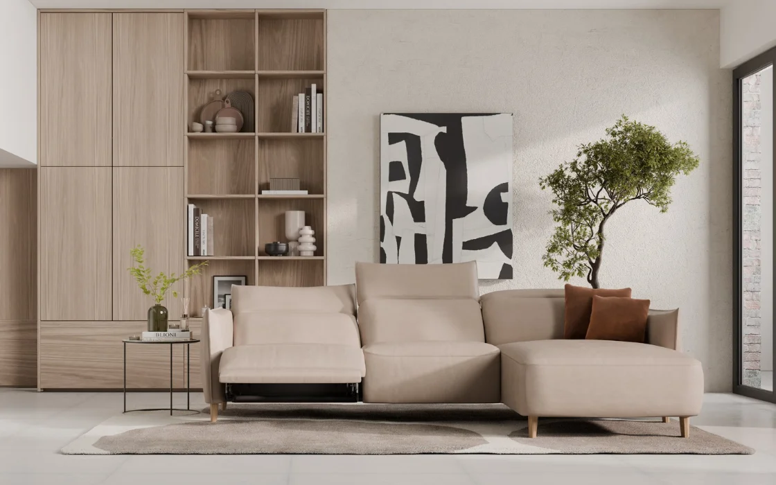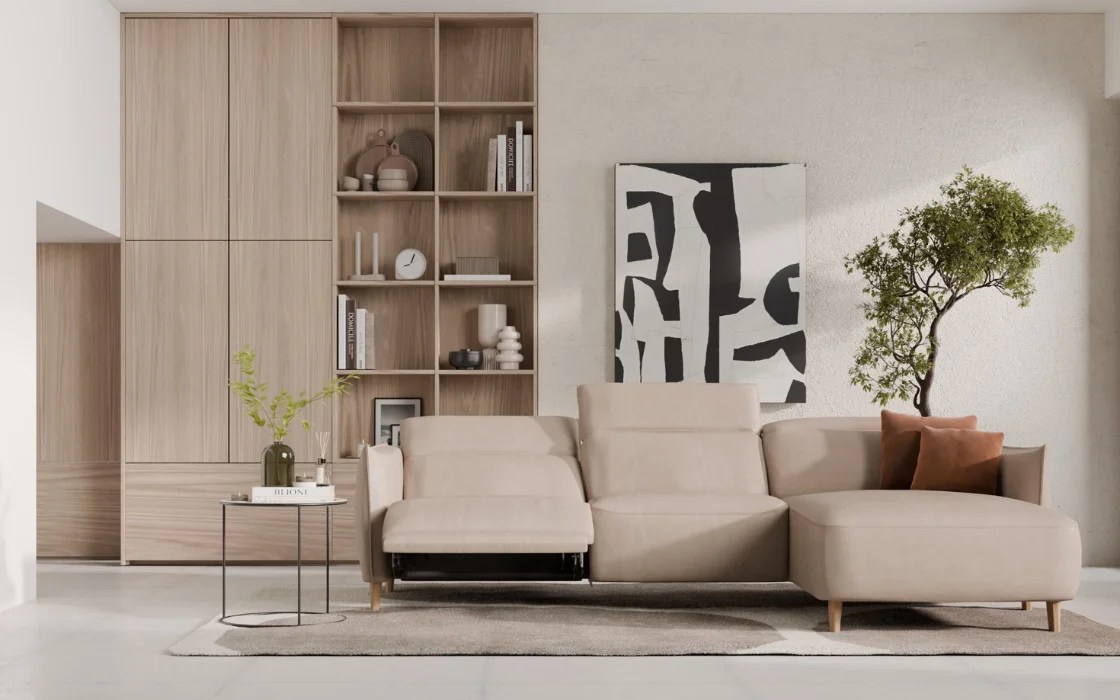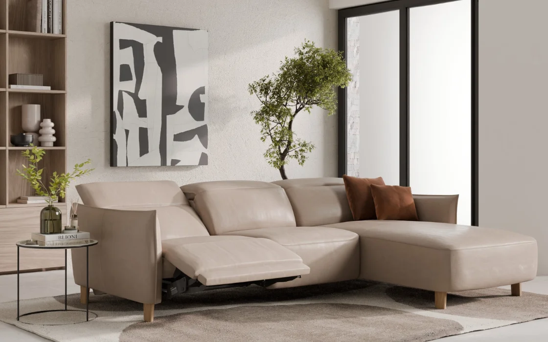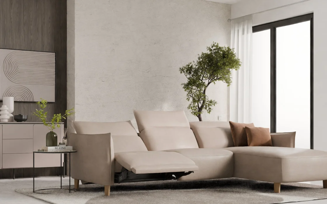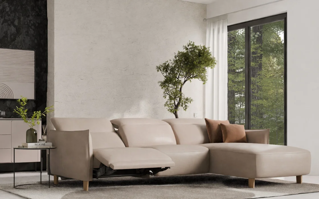 Zaokrąglone krawędzie, eleganckie podłokietniki i wyjątkowo głębokie siedziska tworzą przestrzeń, w której od razu chce się rozsiąść. Model ten wyróżnia się elektrycznie regulowaną głębokością siedziska oraz zagłówkami, dzięki czemu z łatwością dopasujesz pozycję do swoich potrzeb, od popołudniowego odpoczynku aż po długie wieczory z ulubionym serialem.