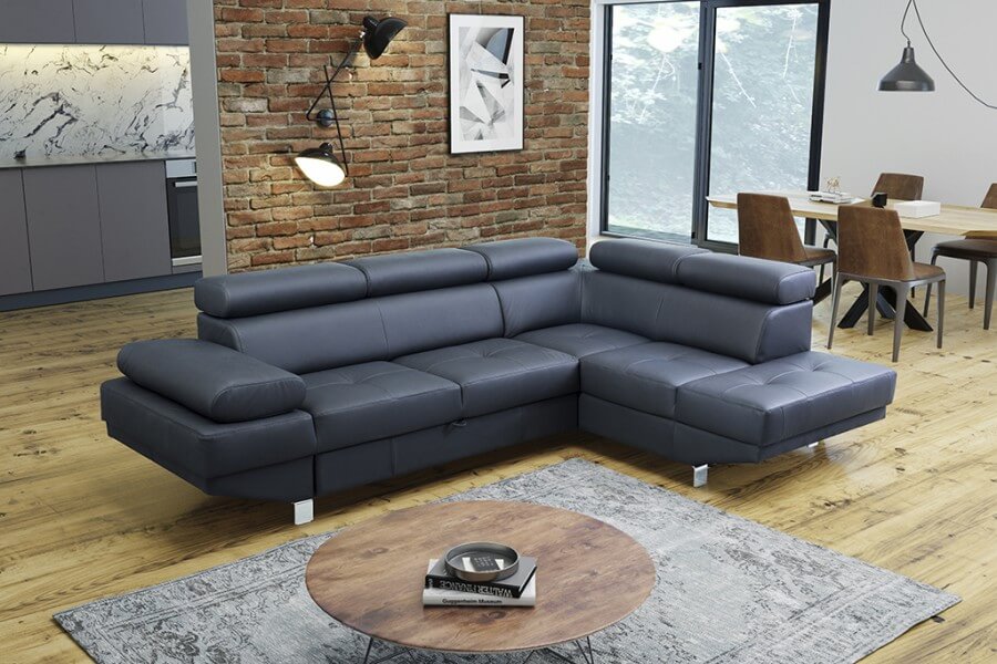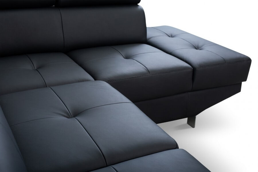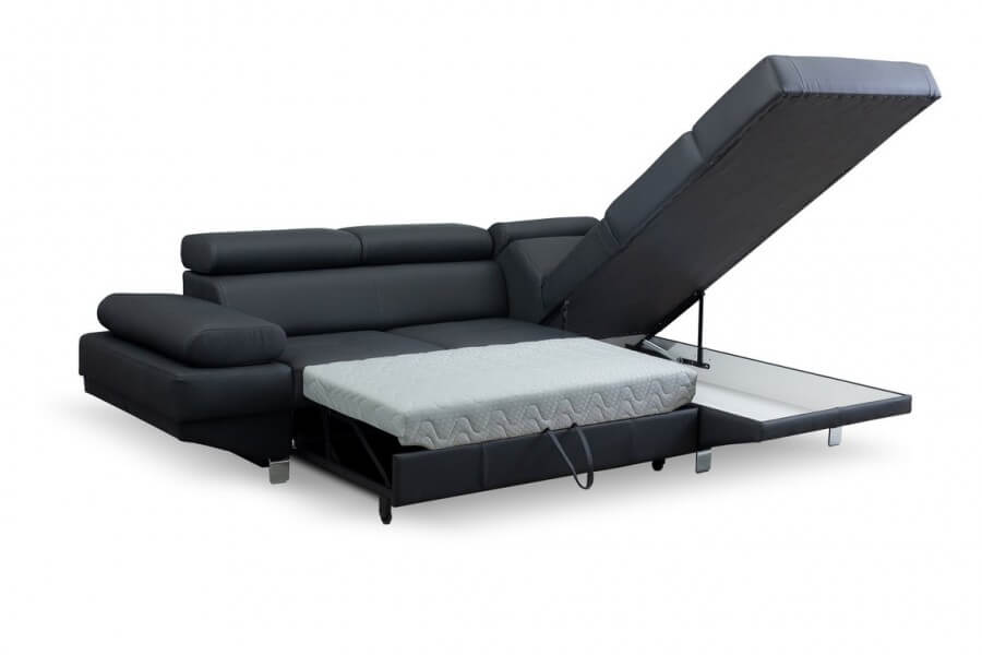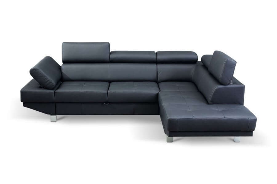 Funkcjonalność narożnika Genesis idzie w parze z jego estetyką. Model wyposażony jest w praktyczny pojemnik na pościel oraz mechanizm typu DELFIN, który zapewnia szybkie i wygodne rozkładanie przestrzeni do spania (193 x 125 cm). Regulowane zagłówki i ruchome podłokietniki oferują podwójną funkcjonalność – zarówno jako oparcie, jak i element dostosowujący się do Twoich indywidualnych potrzeb.