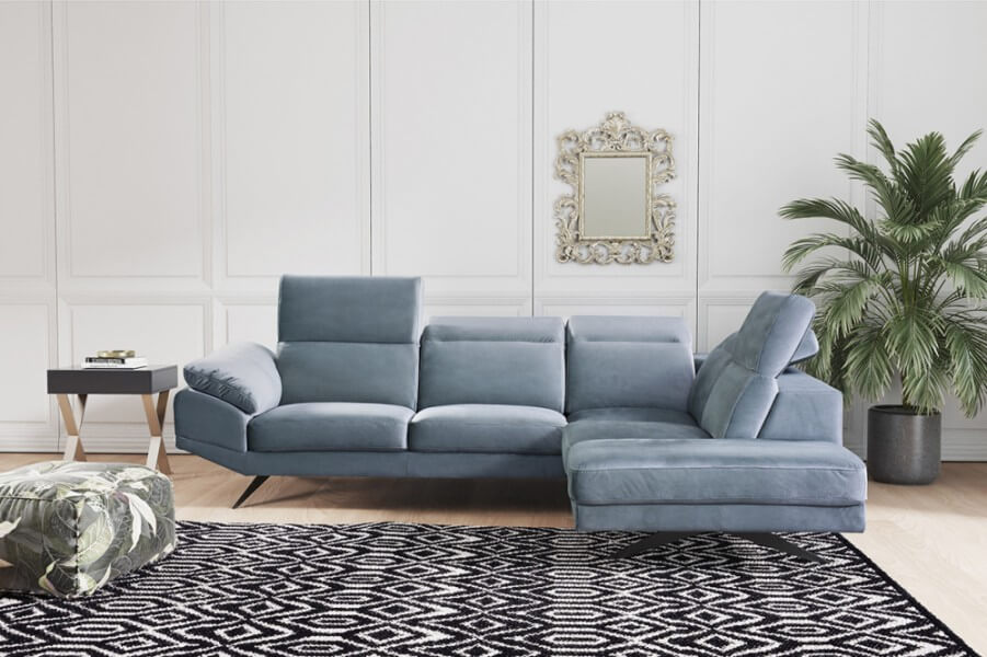 Narożnik Giovanni zachwyca finezyjnym designem a jego wysoka jakość wykonania zapewnia długoletni komfort użytkowania. Wypoczynek dostępny jest w bogatej ofercie tkanin obiciowych oraz skóry naturalnej.