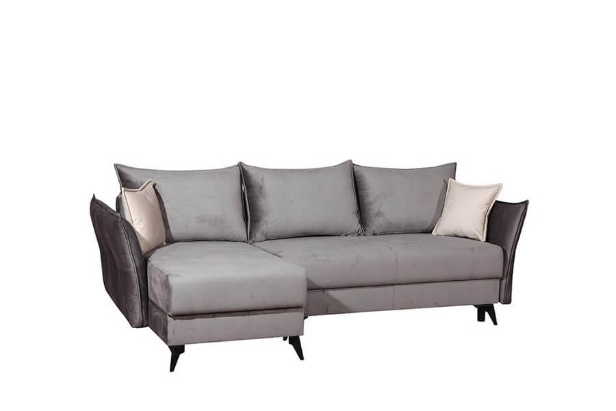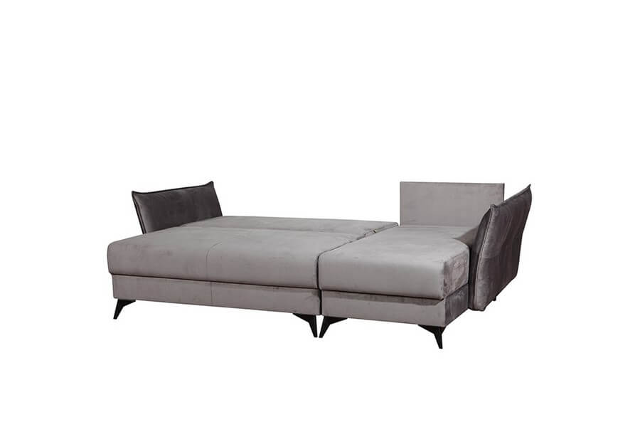 Funkcja spania codziennego posiada automat DL, który zapewnia łatwe rozkładanie kanapy do spania oraz łatwy dostęp do pojemnika na pościel. Niecodzienny charakter narożnika podkreślają smukłe, czarne metalowe nóżki. Narożnik uniwersalny – sam zdecydujesz i w każdej chwili zmienisz stronę ustawienia narożnika.