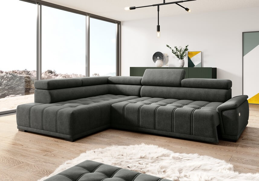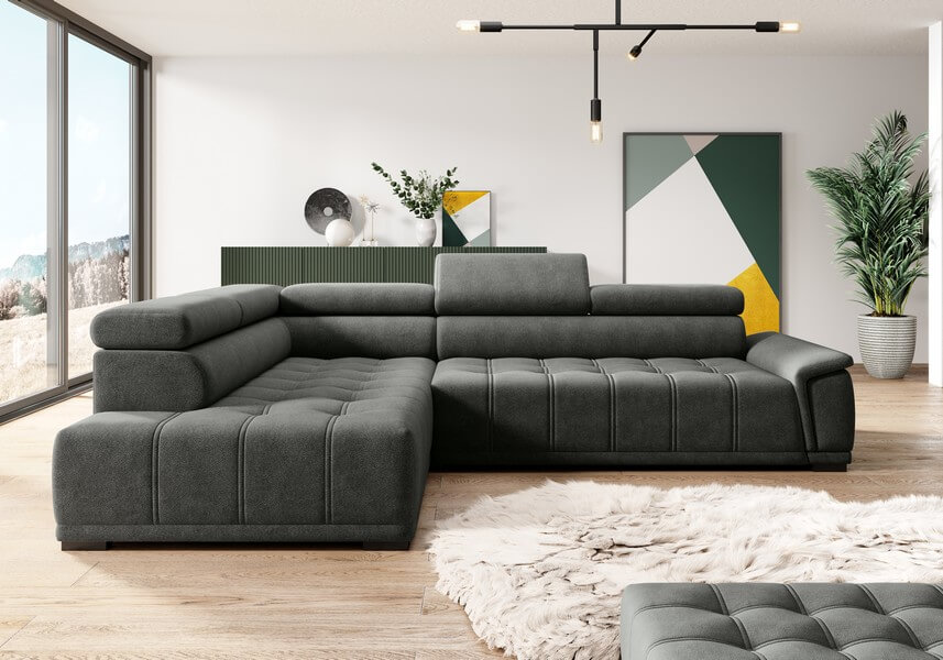 Narożnik dostępny jest zarówno w wersji lewostronnej, jak i prawostronnej, umożliwiając dopasowanie do indywidualnych preferencji i aranżacji przestrzeni.