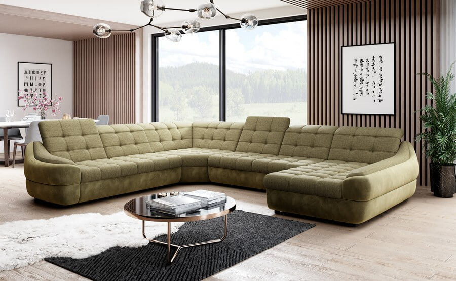 Narożnik Infinity XL R2, charakteryzujący się nowoczesnym wzornictwem a jego głębokie, pikowane siedziska oraz ruchome zagłówki zapewniają nieporównywalny komfort, umożliwiając dostosowanie pozycji do indywidualnych preferencji. Eleganckie zaokrąglone boki dodają meblowi wyrafinowania i finezji, podkreślając jego stylowy charakter.