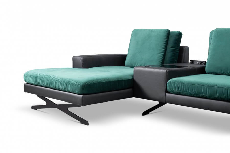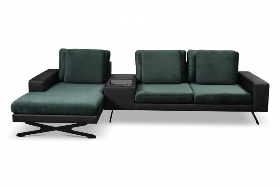 Komfortowy narożnik Laverno to doskonały wybór dla osób ceniących sobie elegancję i funkcjonalność. Laverno wyposażony w elegancki barek 220V z modułem USB ze szkła lacobel. Stylowe i solidne nogi wykonane z metalu nadają narożnikowi nowoczesny wygląd i zapewniają stabilność.