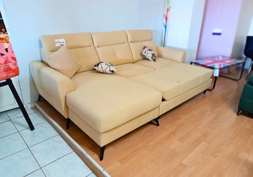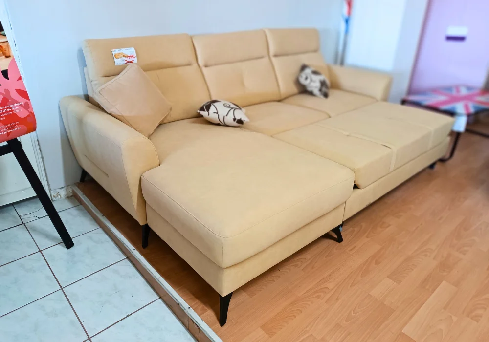 Komfortowy narożnik LOFT wyposażony jest w funkcję spania typu delfin o powierzchni 215 cm x 120 cm i pojemnik na pościel w module longchair. Posiada wysokie oparcie i podłokietnik pozwalający wygodnie oprzeć się bokiem. Narożnik stoi na solidnych chromowanych nogach. Oferowany model w wersj lewostronnej.