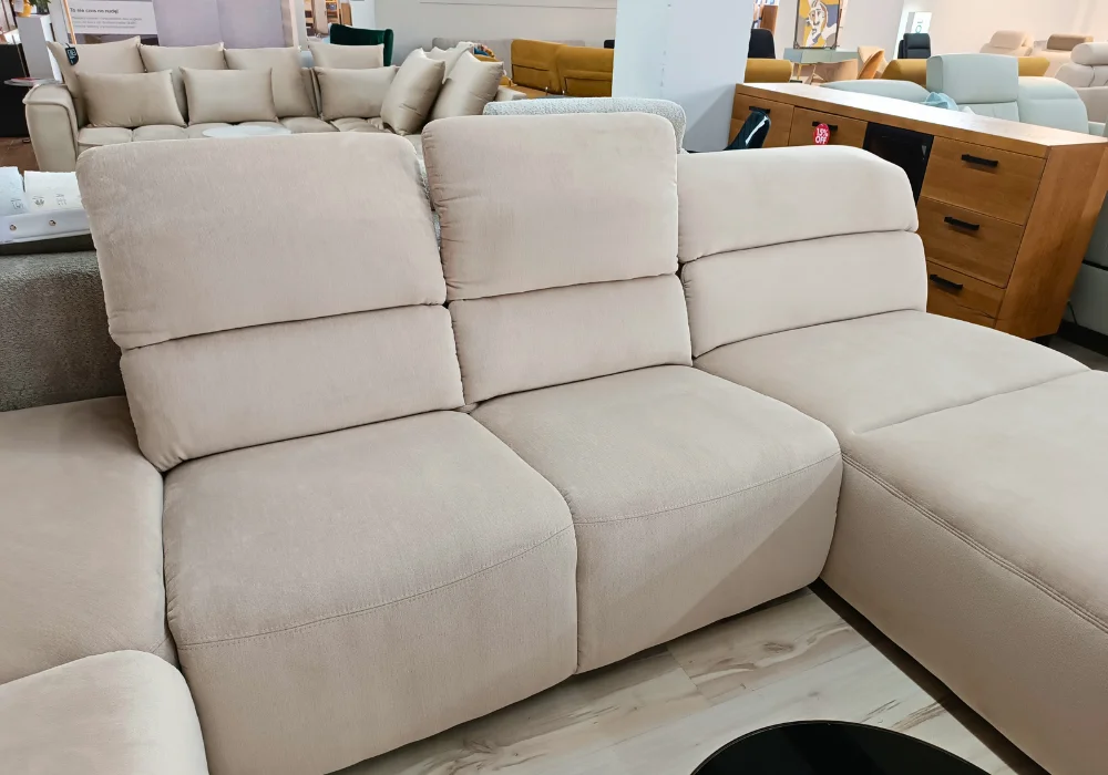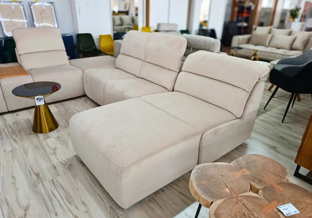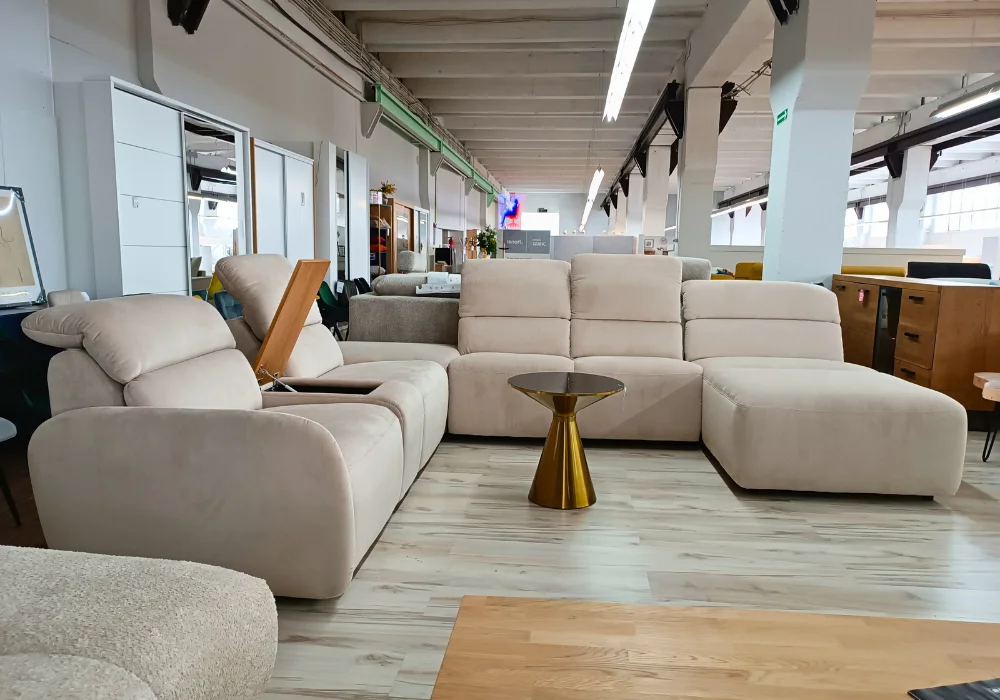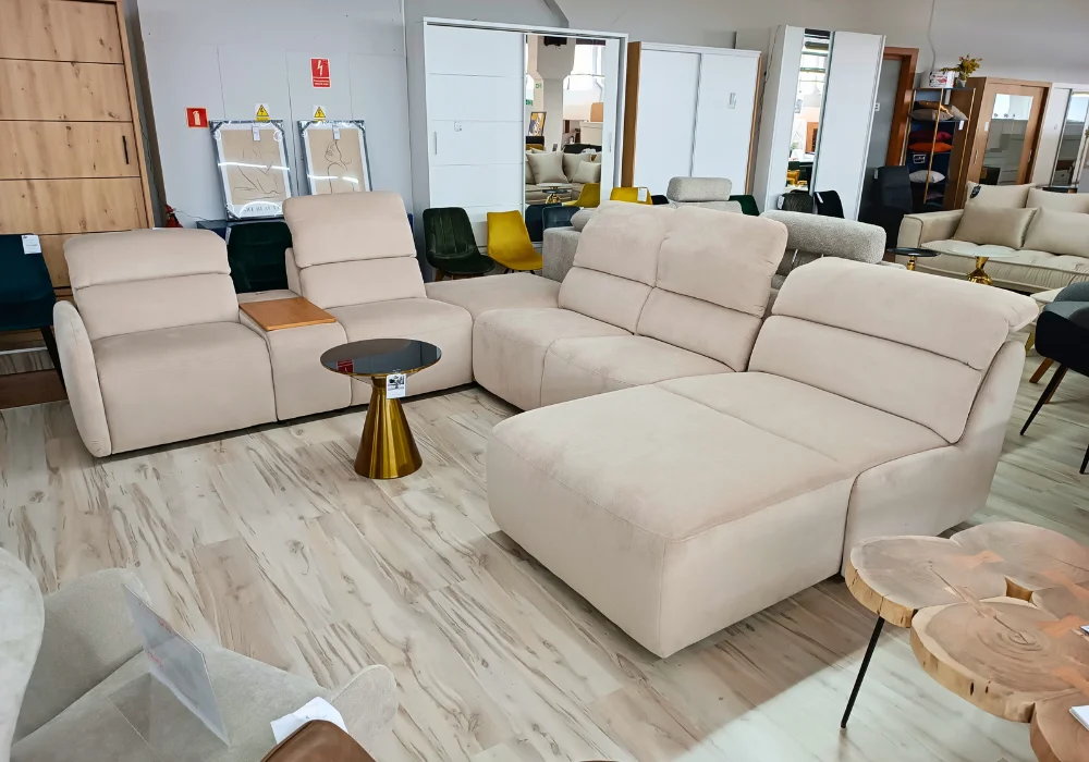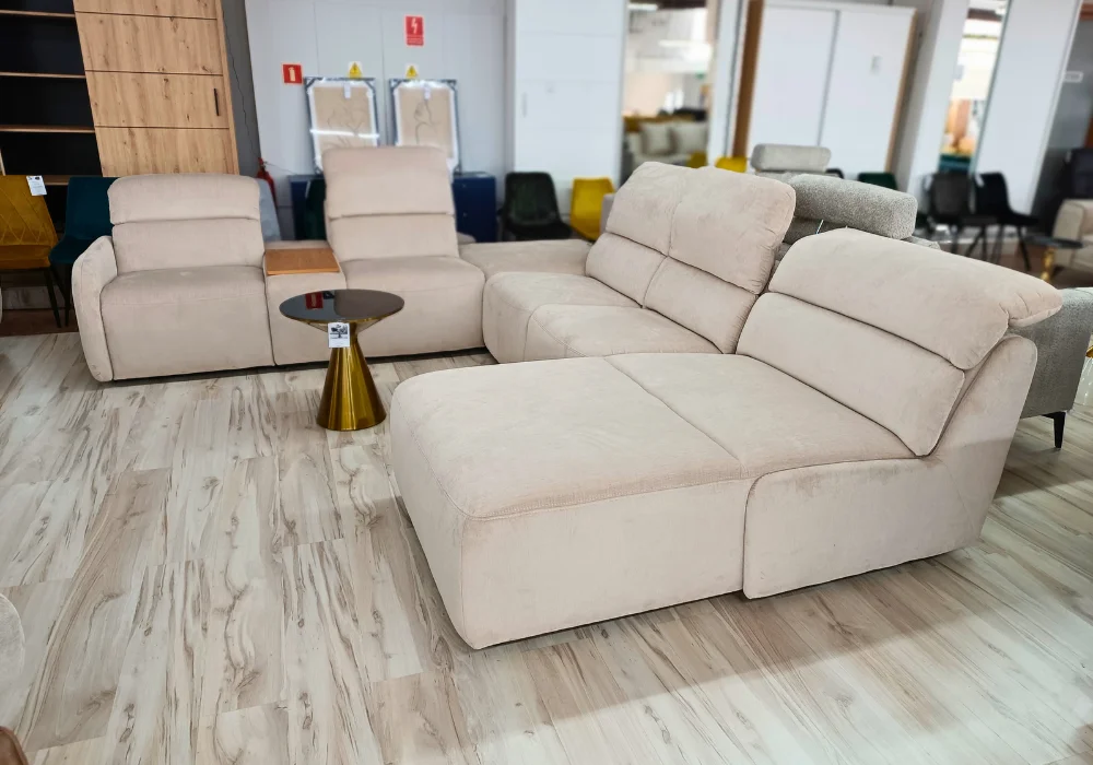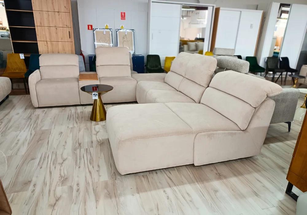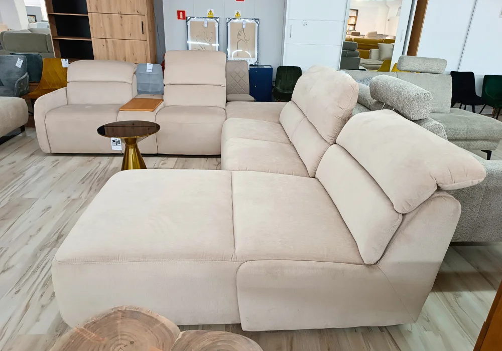 System relaksu Plus: podłączany do gniazdka elektrycznego, umożliwia precyzyjne sterowanie ustawieniami foteli. Przyciski sterujące zostały umieszczone z boku, a wejście elektryczne – dyskretnie z tyłu mebla, dbając o estetykę całości.