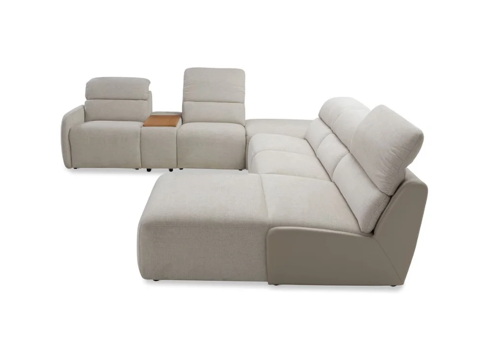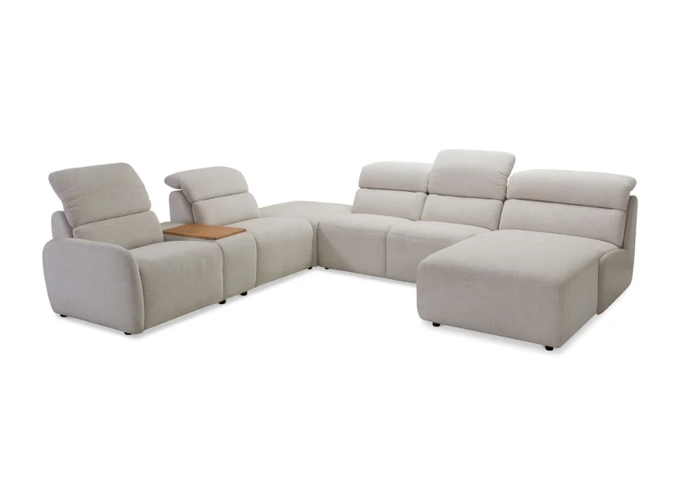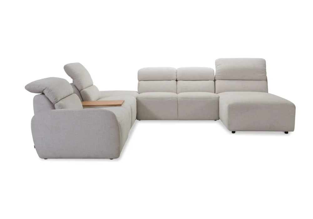 Loggia wyróżnia się wyrazistymi, ruchomymi zagłówkami – w pozycji złożonej prezentują się dyskretnie, a przy pełnym podniesieniu tworzą wygodne, wysokie oparcie, gwarantując niezrównany komfort podczas odpoczynku. Ergonomicznie zaprojektowany zestaw doskonale wpisuje się w nowoczesne wnętrza, podkreślając ich wyrafinowany charakter.