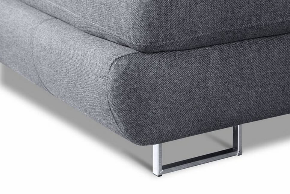 Siedzisko wypełnione sprężyną falistą. W modelu tym zastosowano system rozkładania typu DELFIN, który pozwoli bardzo szybko zamienić narożnik w wygodne łóżko. Dostępny w wersji lewostronnej oraz prawostronnej. Narożnik tapicerowany w szerokiej gamie tkanin i skór naturalnych. Wypoczynek stoi na chromowanej podstawie w kształcie delikatnej ramki.