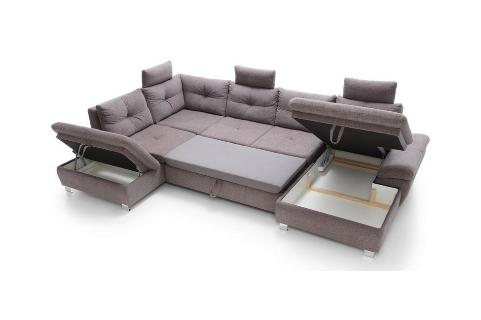 Madeira to praktyczny wypoczynek wyposażony w funkcję spania i pojemnik na pościel. Narożnik w kształcie litery U posiada dwa pojemniki na pościel. Model dostępny jest w wersji lewostronnej i prawostronnej. W modelu tym zastosowano system rozkładania typu DELFIN.