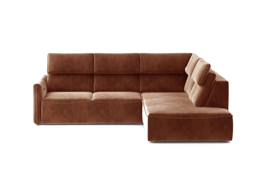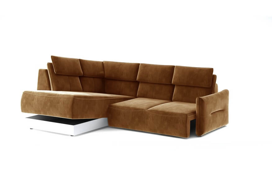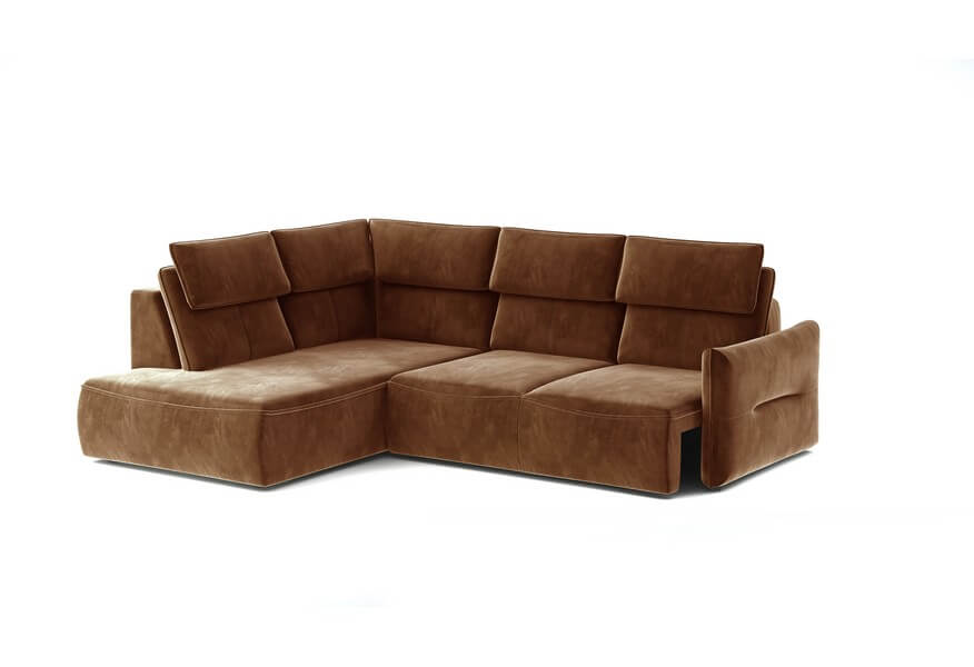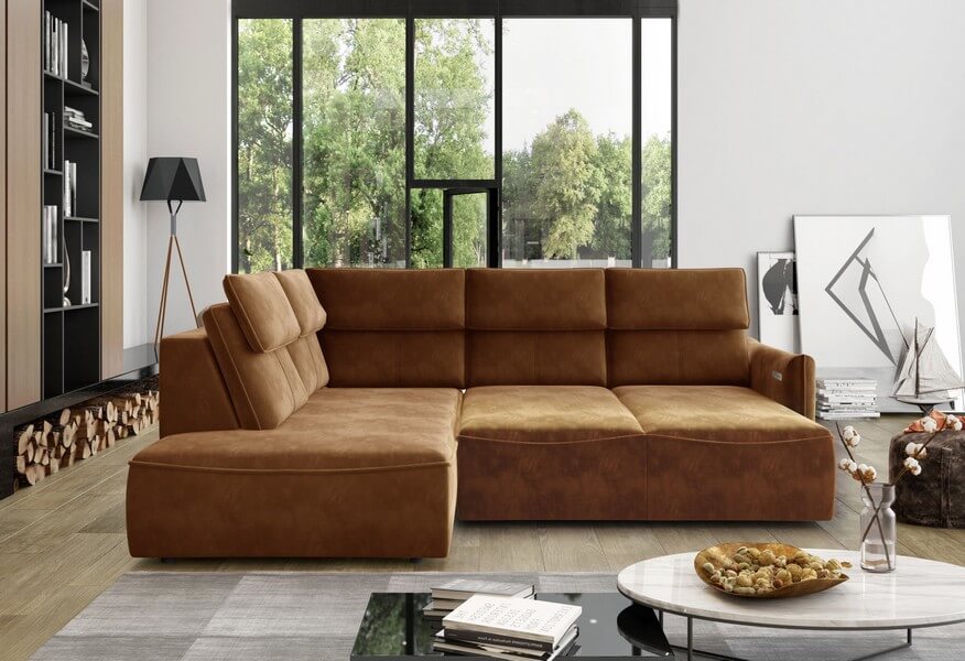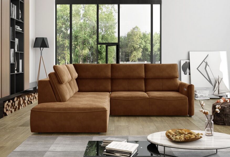 Mango L prezentuje nowoczesną formę, wyróżniającą się nie tylko estetyką, ale także funkcjonalnością i komfortem. Narożnik oferuje doskonałe wsparcie dla głowy, zapewniając wygodną i relaksującą pozycję podczas odpoczynku. Jedną z najciekawszych funkcji Mango L jest elektryczna regulacja głębokości siedziska, która pozwala na wysunięcie go aż o 60 cm. To doskonałe rozwiązanie dla osób, które potrzebują dodatkowej przestrzeni gościnnej z możliwością okazjonalnego spania.