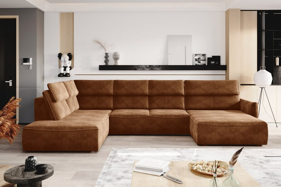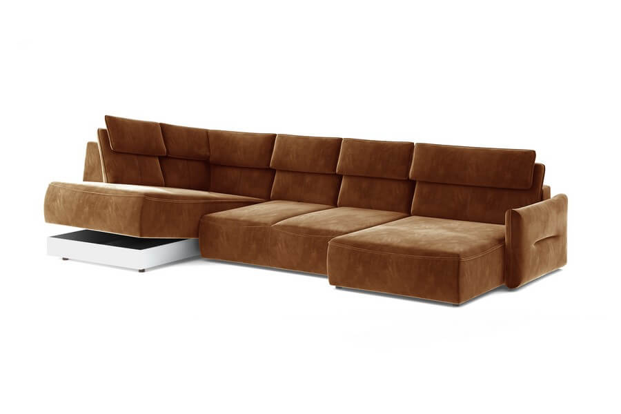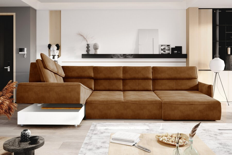 Jednak to nie wszystko, co Mango XL ma do zaoferowania. Jedną z najbardziej atrakcyjnych funkcji tego narożnika jest jego elektryczna regulacja głębokości siedziska, która umożliwia wysunięcie go aż o 60 cm. Dzięki temu, osoby szukające dodatkowej przestrzeni gościnnej z opcją okazjonalnego spania znajdą w Mango XL idealne rozwiązanie. Dodatkowym atutem tej kolekcji jest ukryty pojemnik w otomanie, który stanowi praktyczne miejsce do przechowywania.